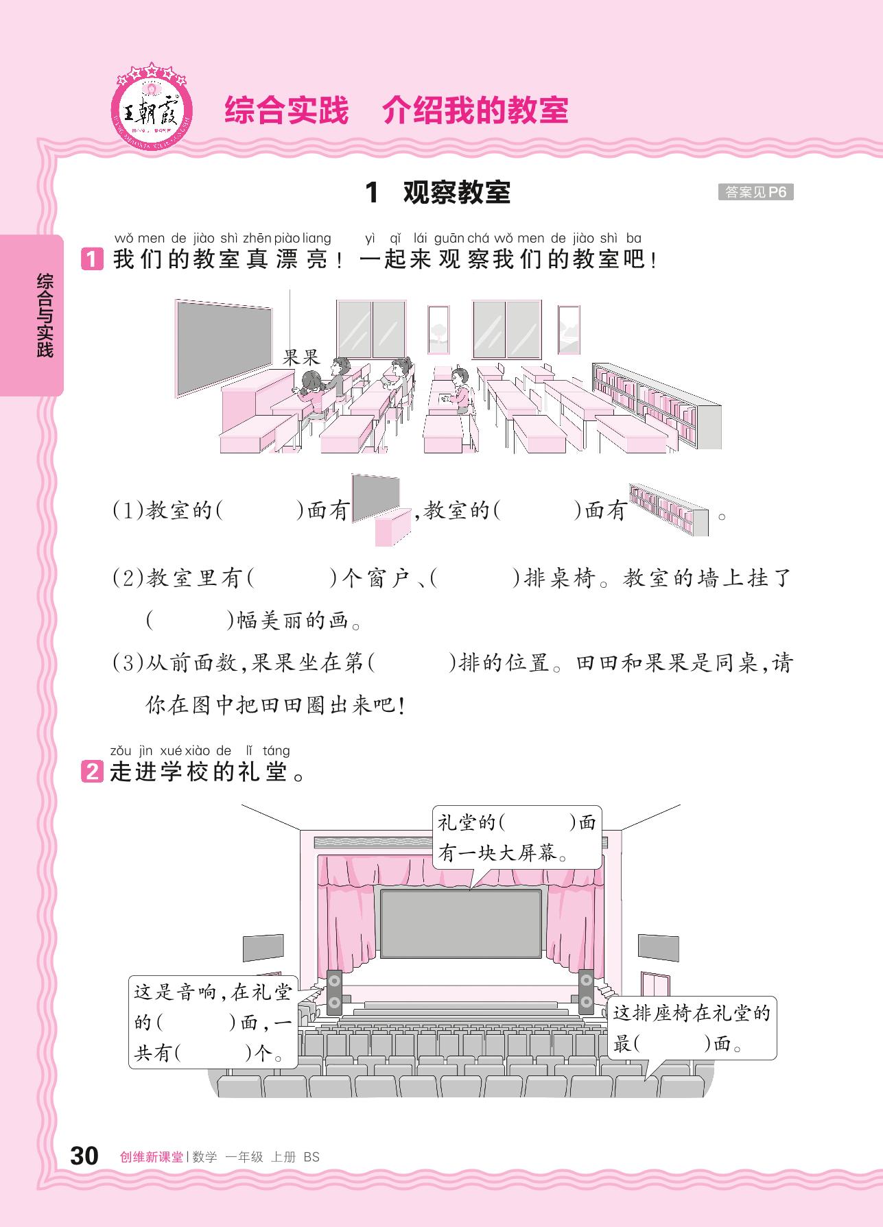 2024秋上册一年级数学北师版 综合实践 介绍我的教室——1. 观察教室