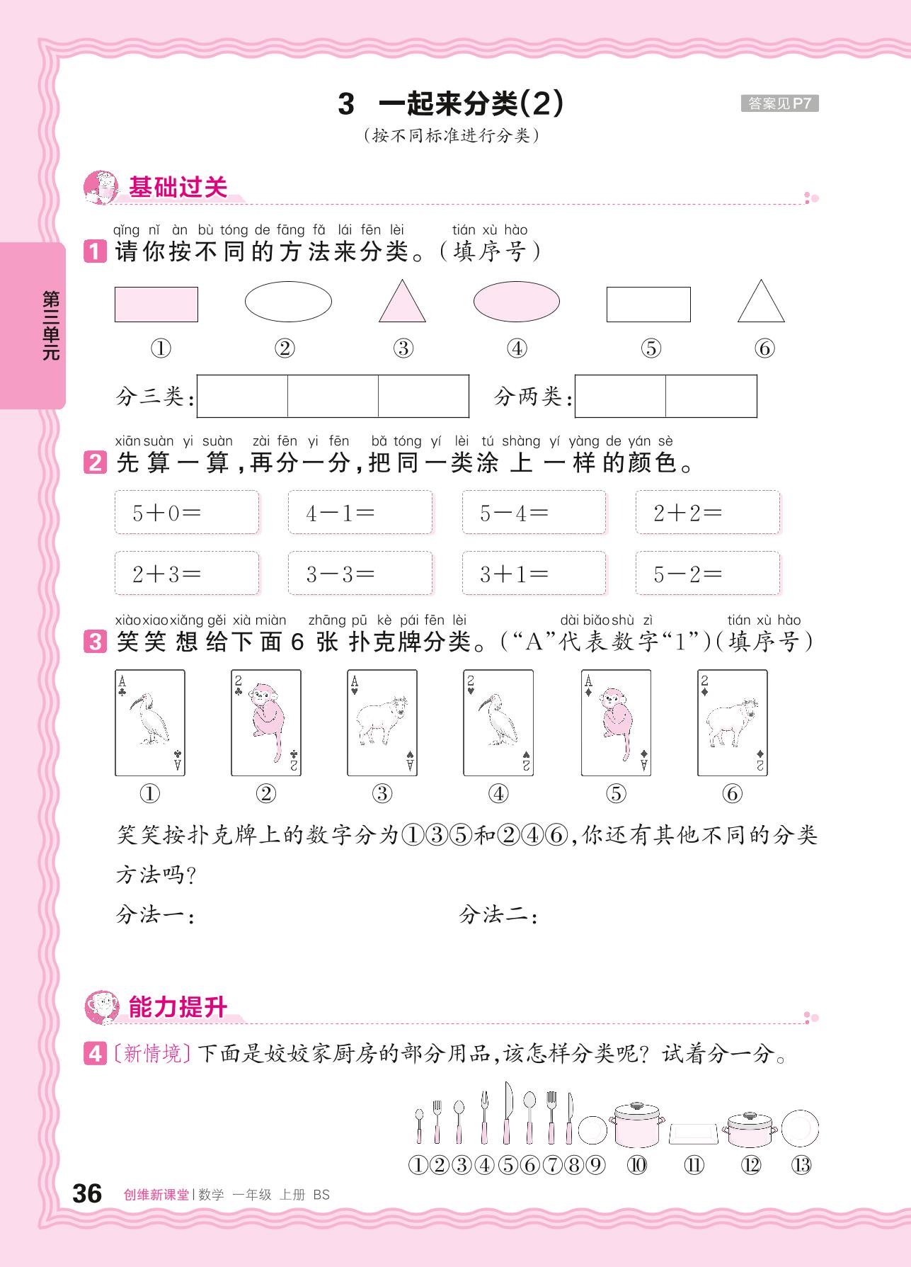 2024秋上册一年级数学北师版 第三单元 整理与分类——3. —起来分类(2)