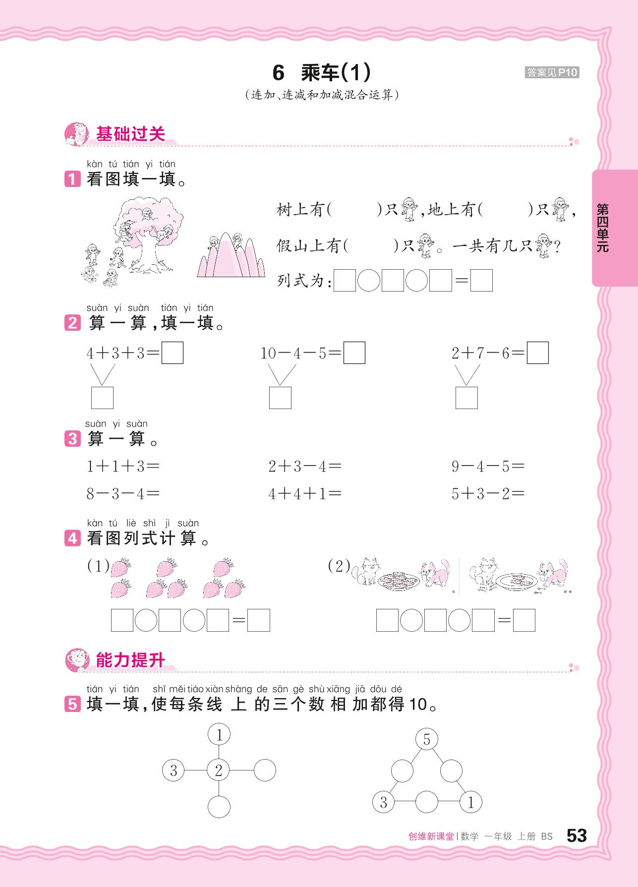 2024秋上册一年级数学北师版 第四单元 10以内数加与减——6. 乘车(1)