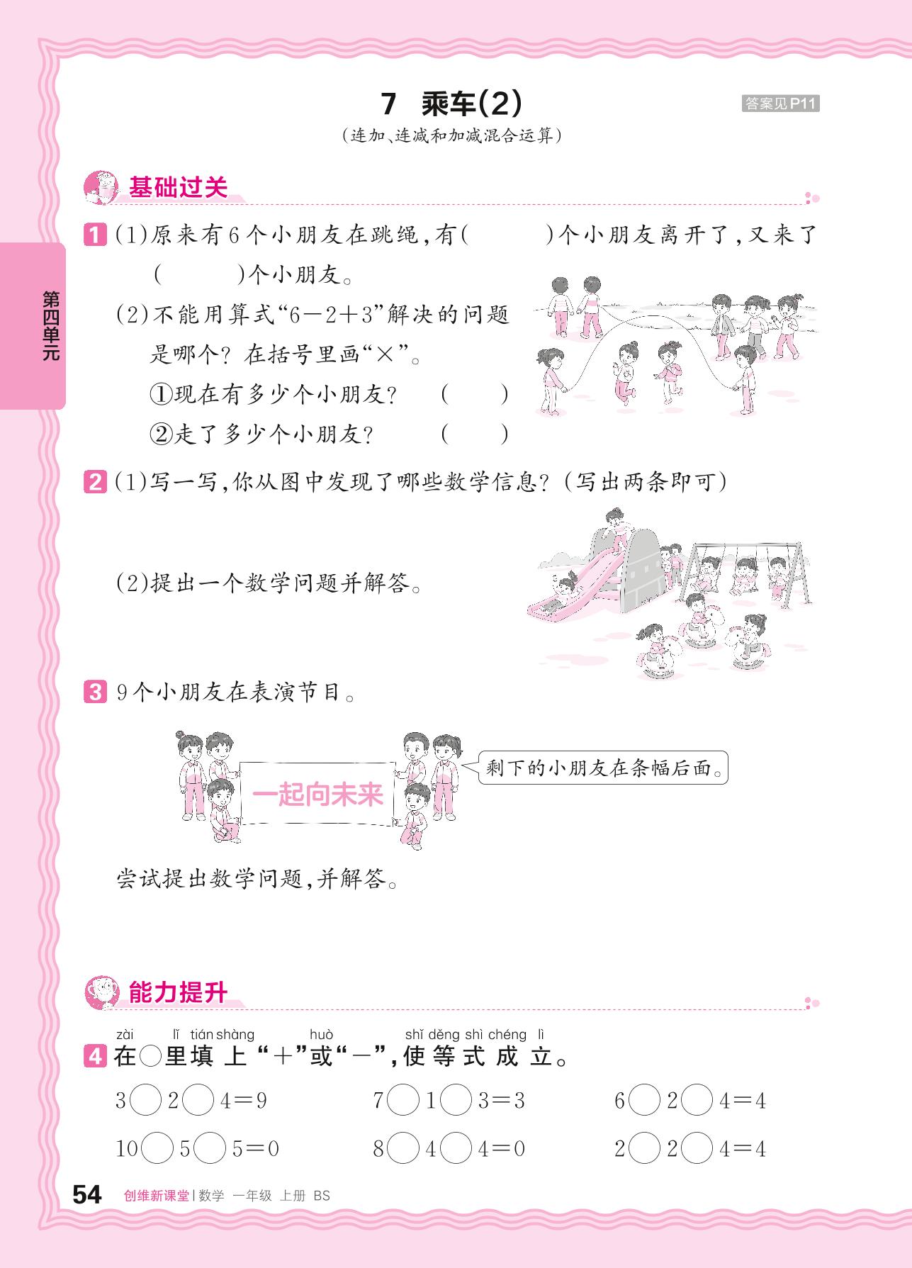 2024秋上册一年级数学北师版 第四单元 10以内数加与减——7. 乘车(2)