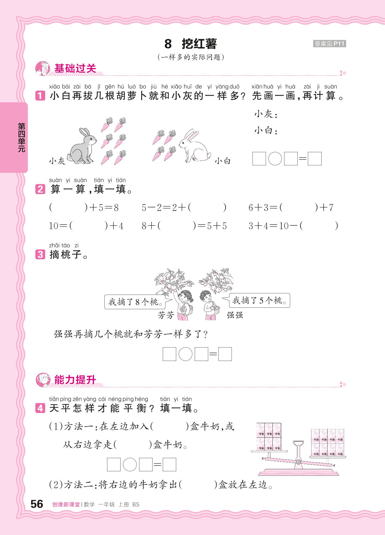 2024秋上册一年级数学北师版 第四单元 10以内数加与减——8. 挖红薯