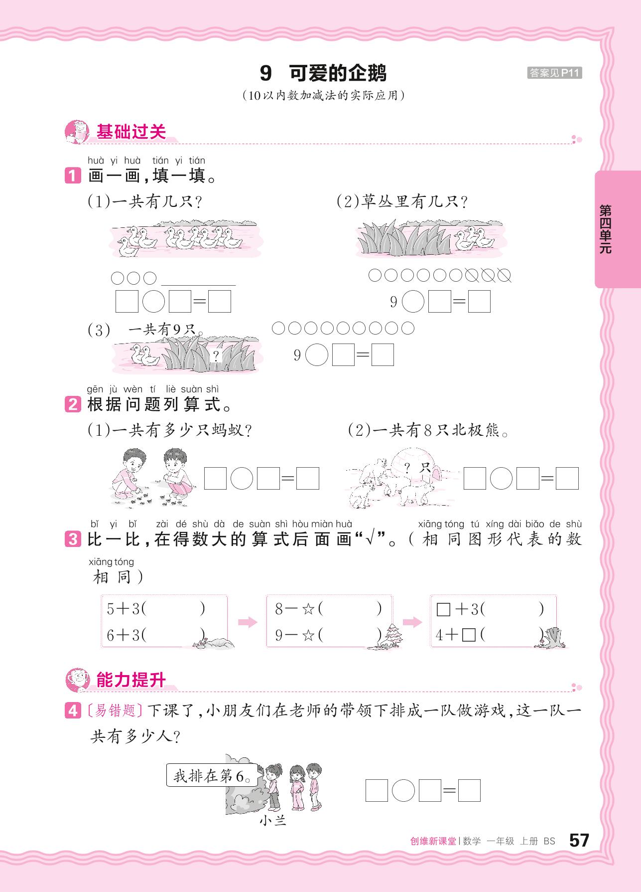 2024秋上册一年级数学北师版 第四单元 10以内数加与减——9. 可爱的企鹅