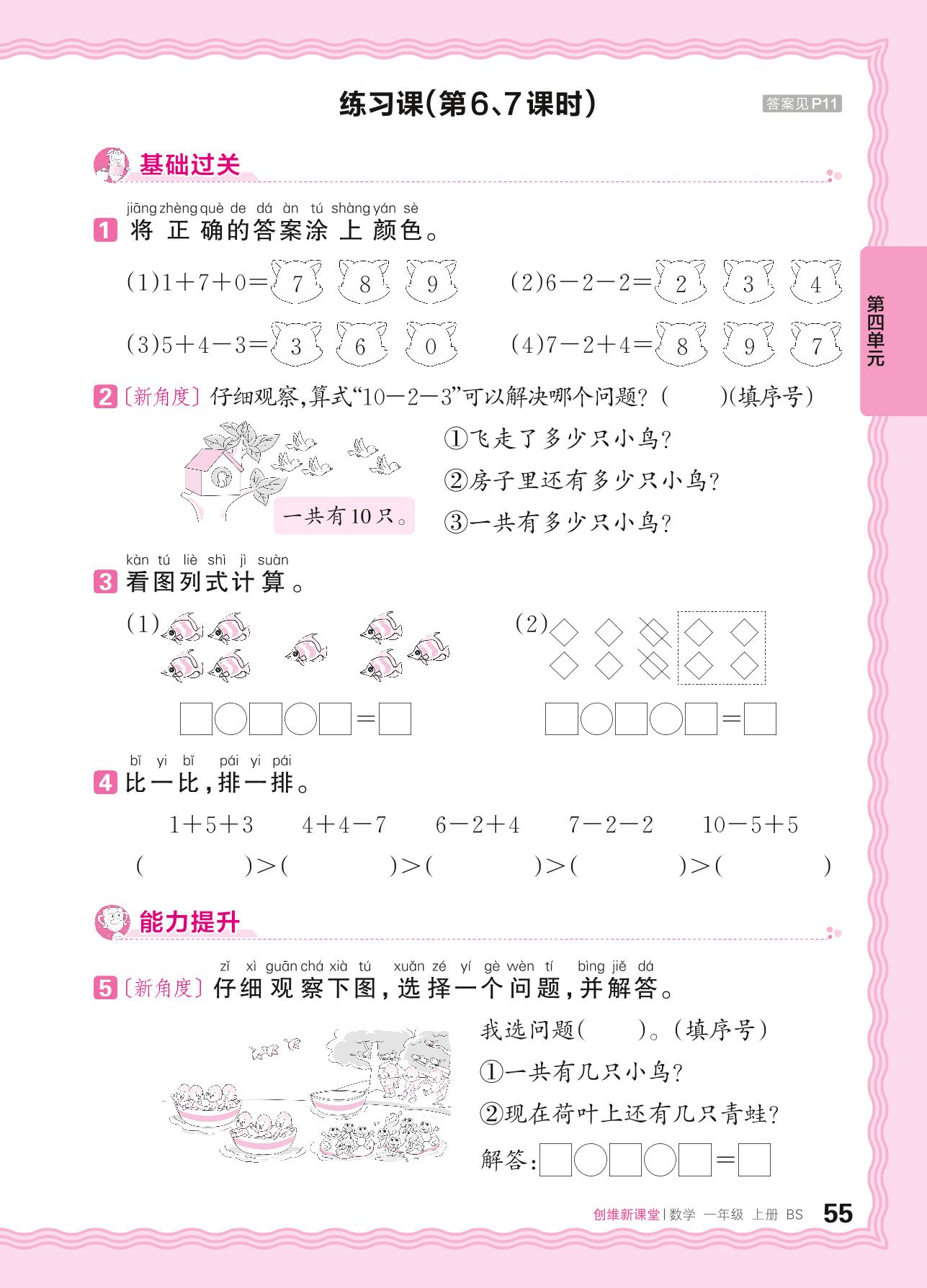 2024秋上册一年级数学北师版 第四单元 10以内数加与减——乘车练习课