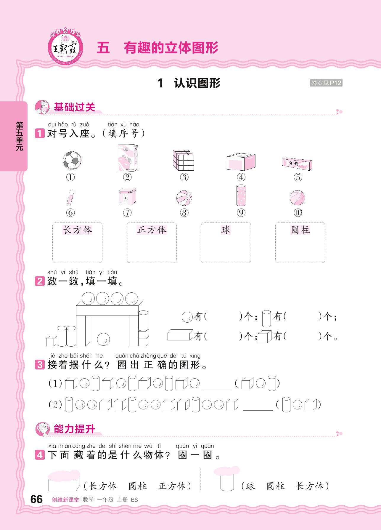 2024秋上册一年级数学北师版 第五单元 有趣的立体图形——1. 认识图形