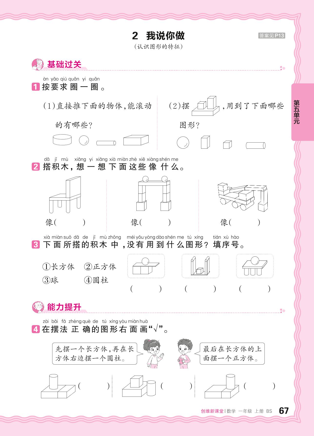 2024秋上册一年级数学北师版 第五单元 有趣的立体图形——2. 我说你做