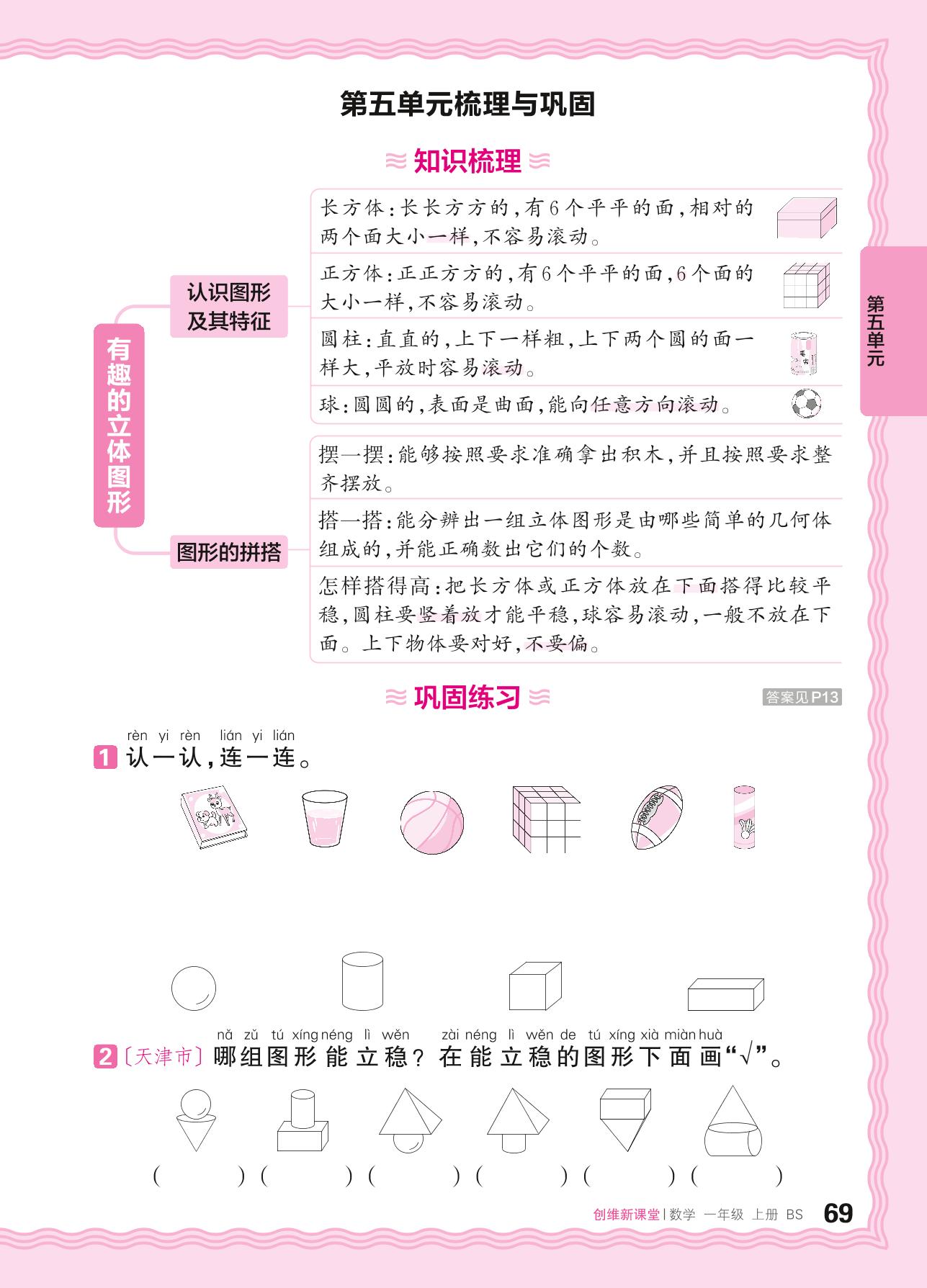 2024秋上册一年级数学北师版 第五单元梳理与巩固
