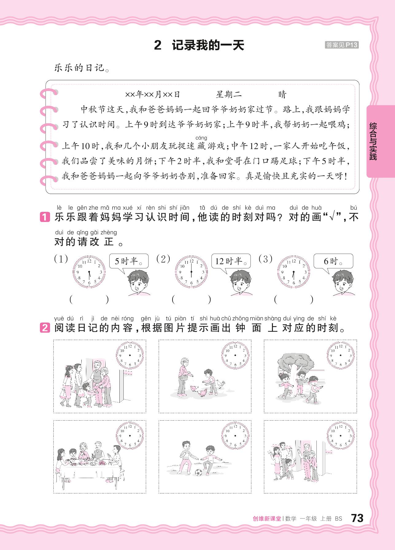 2024秋上册一年级数学北师版 综合实践 记录我的一天——2. 记录我的一天