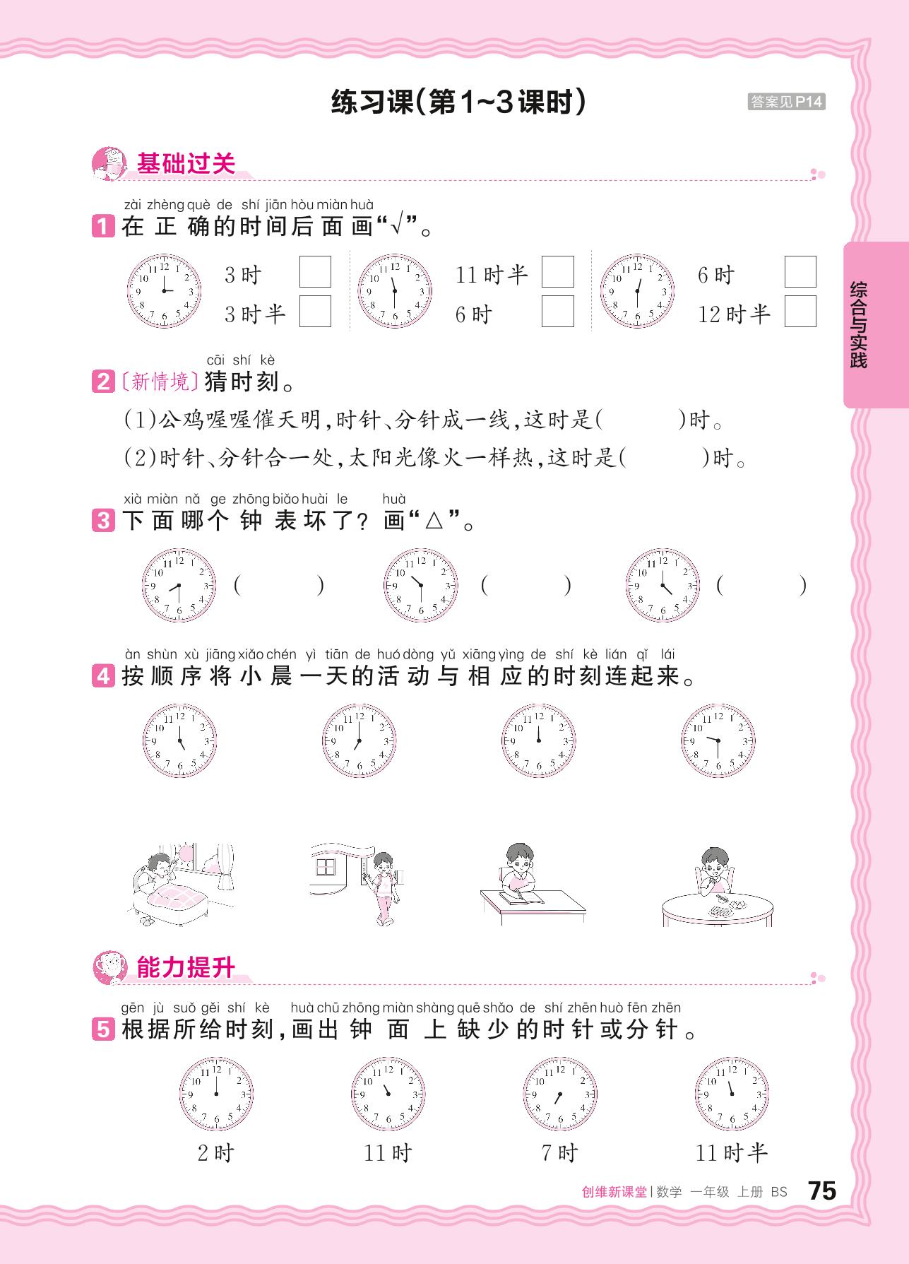 2024秋上册一年级数学北师版 综合实践 记录我的一天练习课