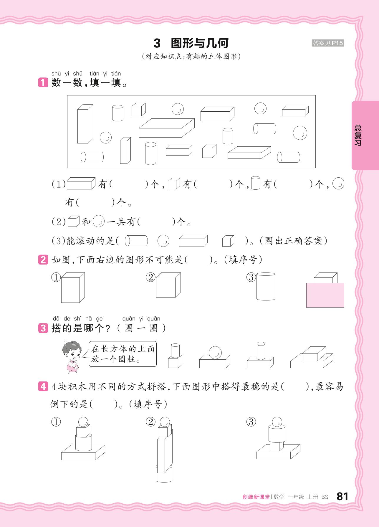 2024秋上册一年级数学北师版 总复习——3. 图形与几何