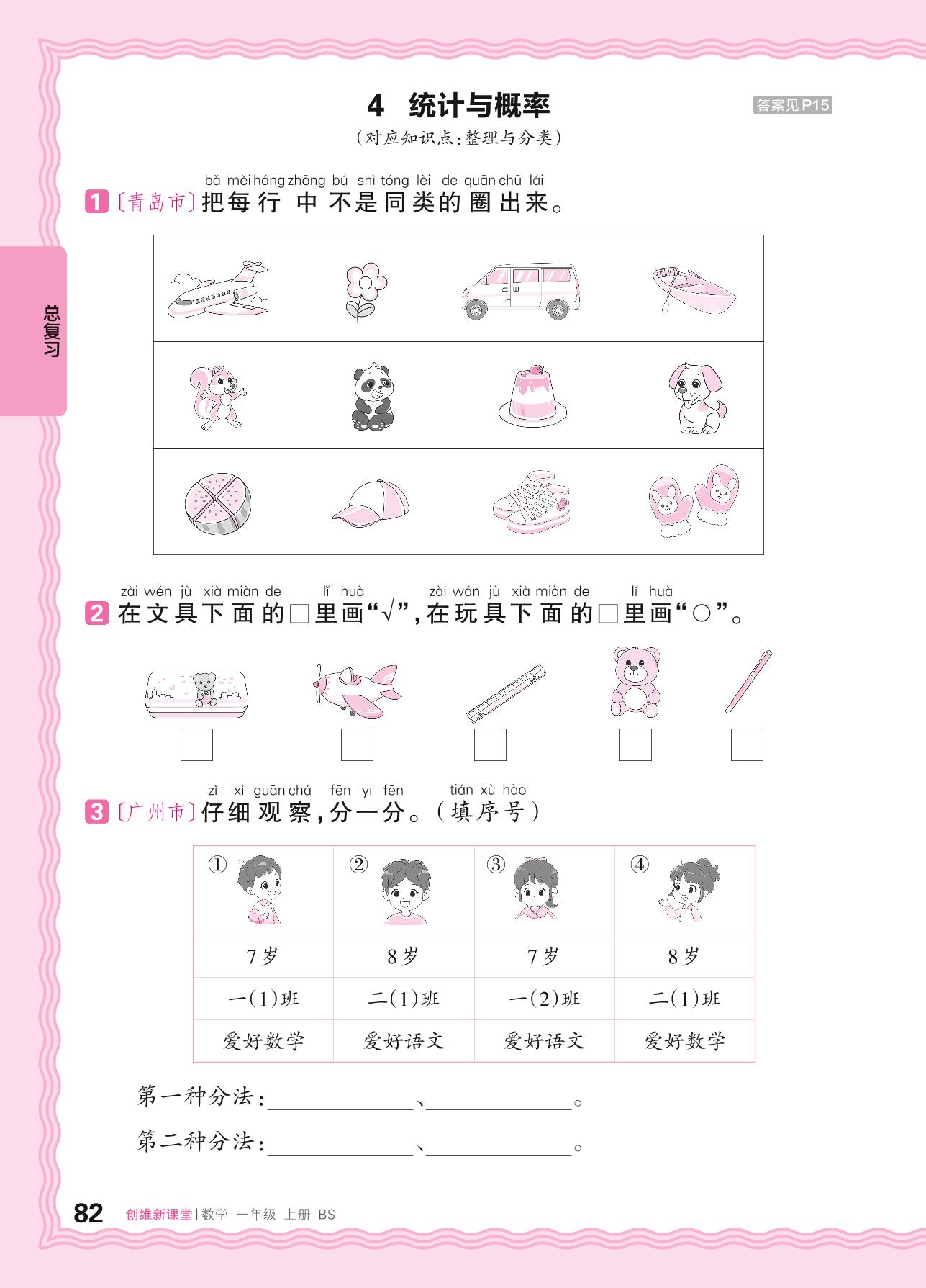 2024秋上册一年级数学北师版 总复习——4. 统计与概率