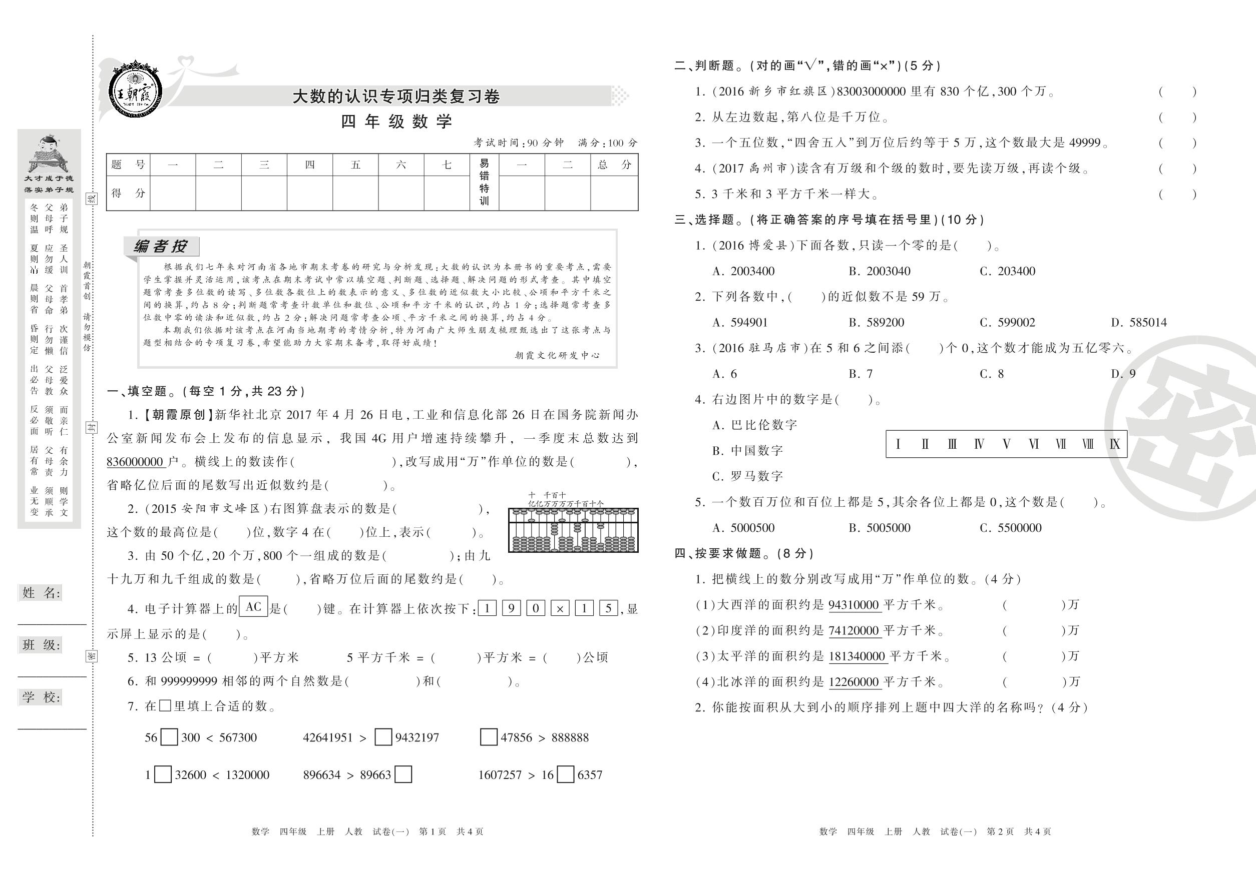 王朝霞期末专项卷四年级上册数学(人教版)_R210804153446【1】