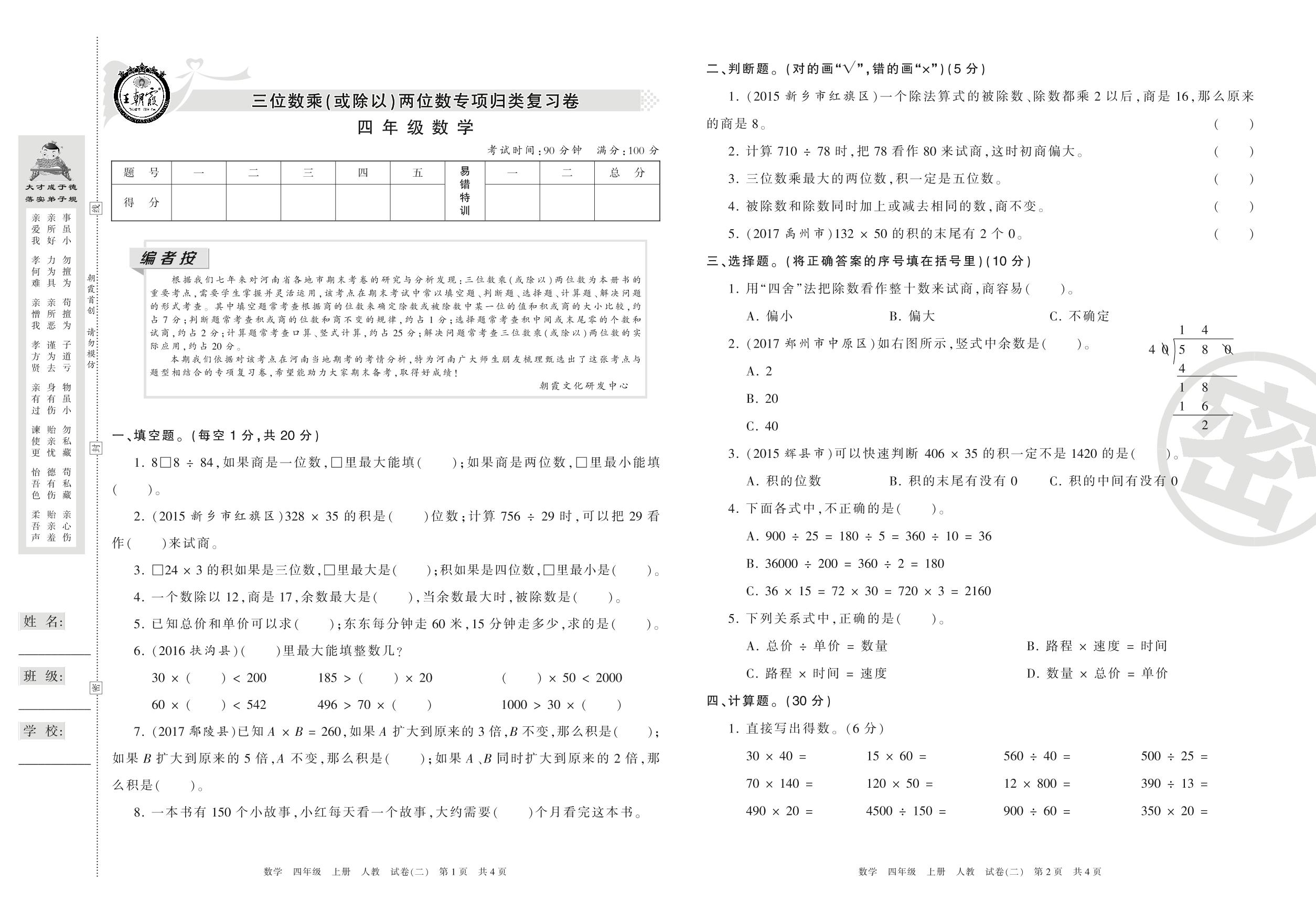 王朝霞期末专项卷四年级上册数学(人教版)_R210804153449【2】
