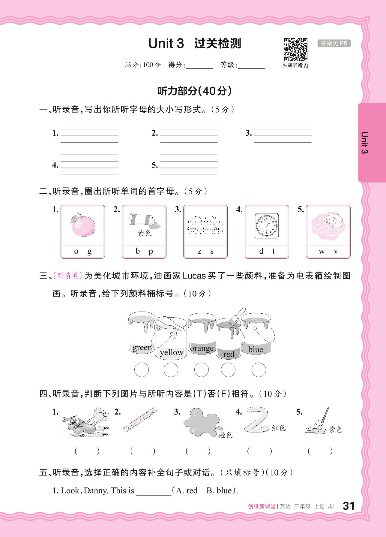三年级英语冀教版(2024)上册单元卷