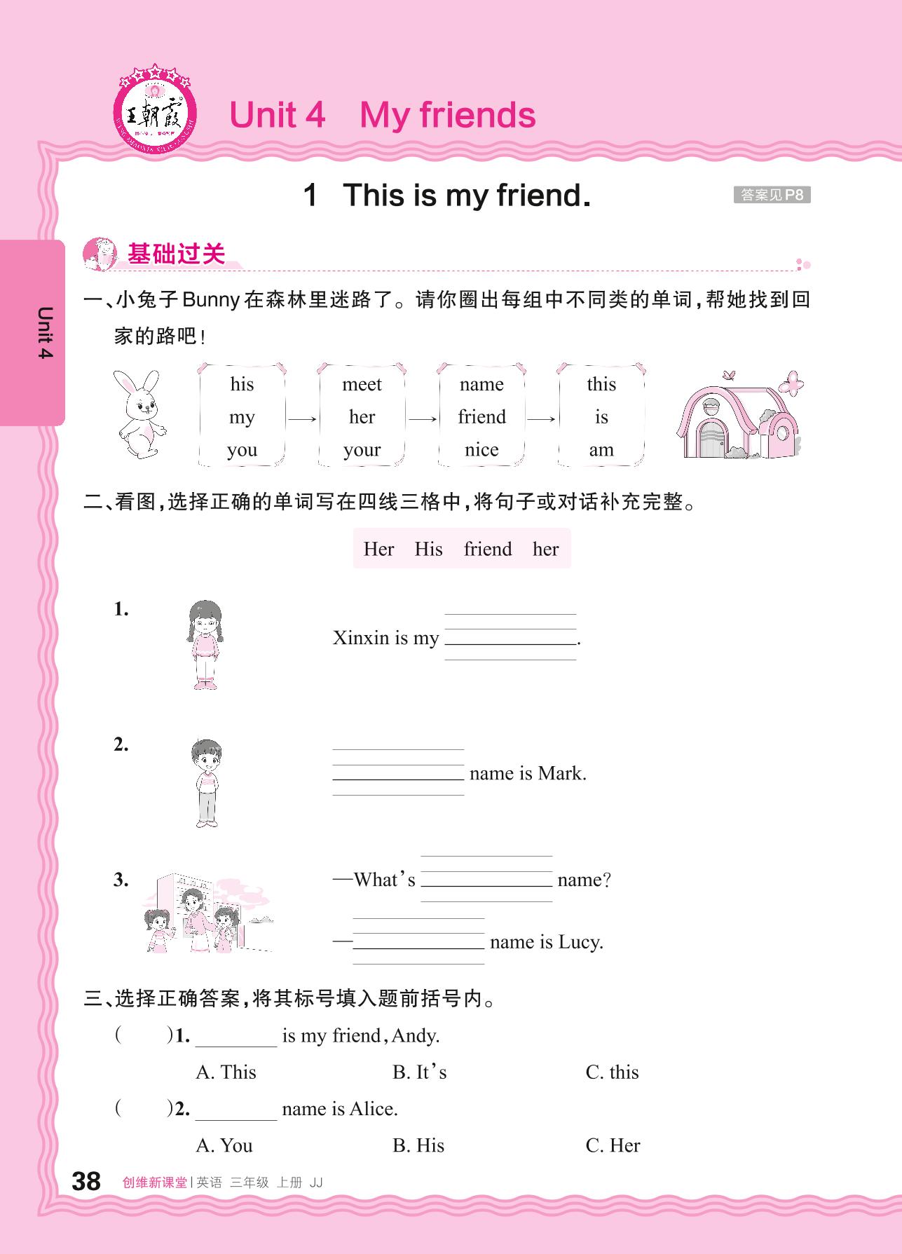 2024秋上册三年级英语冀教版 Unit 4—1 This is my friend.