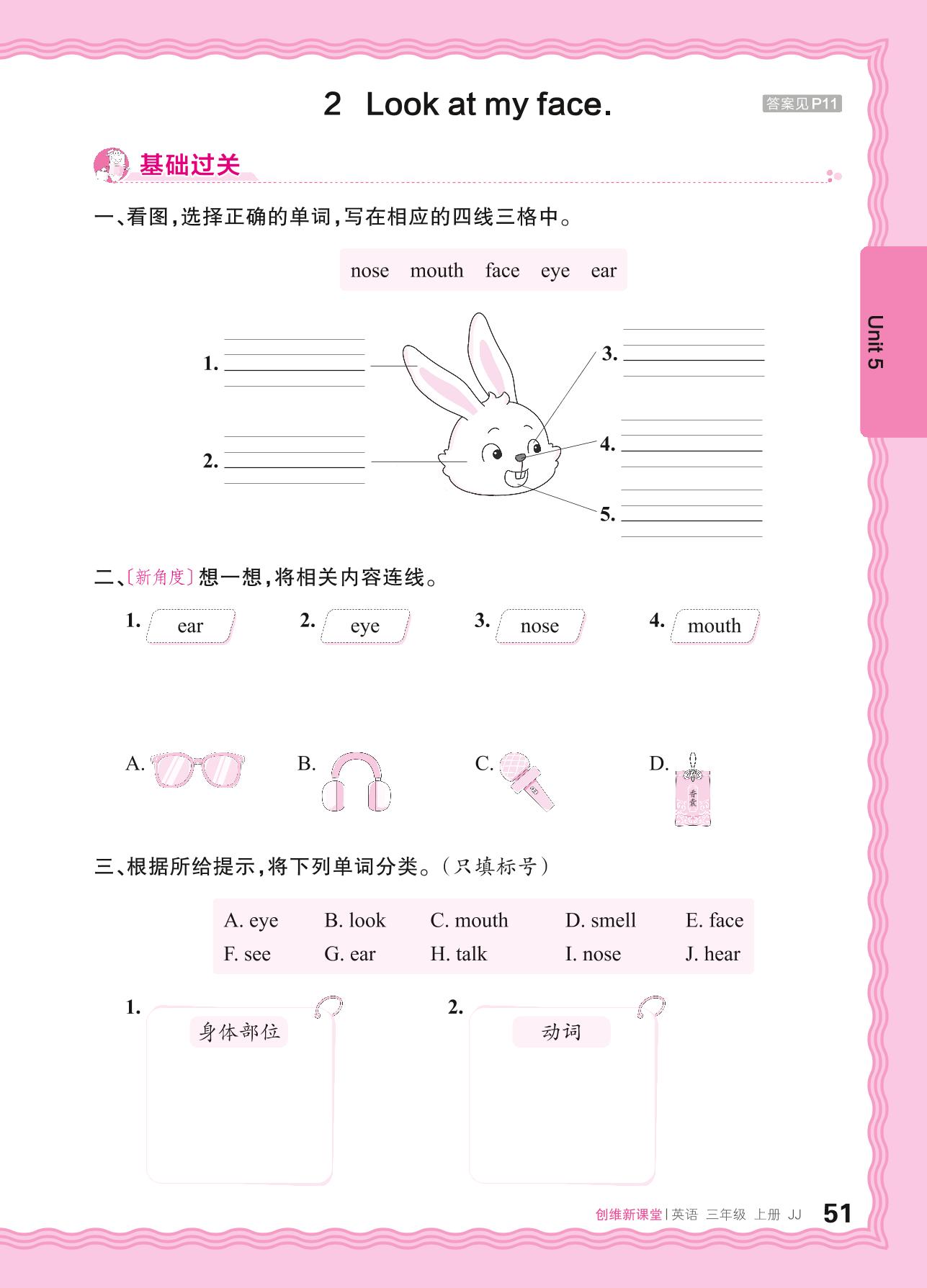2024秋上册三年级英语冀教版 Unit 5—2 Look at my face.
