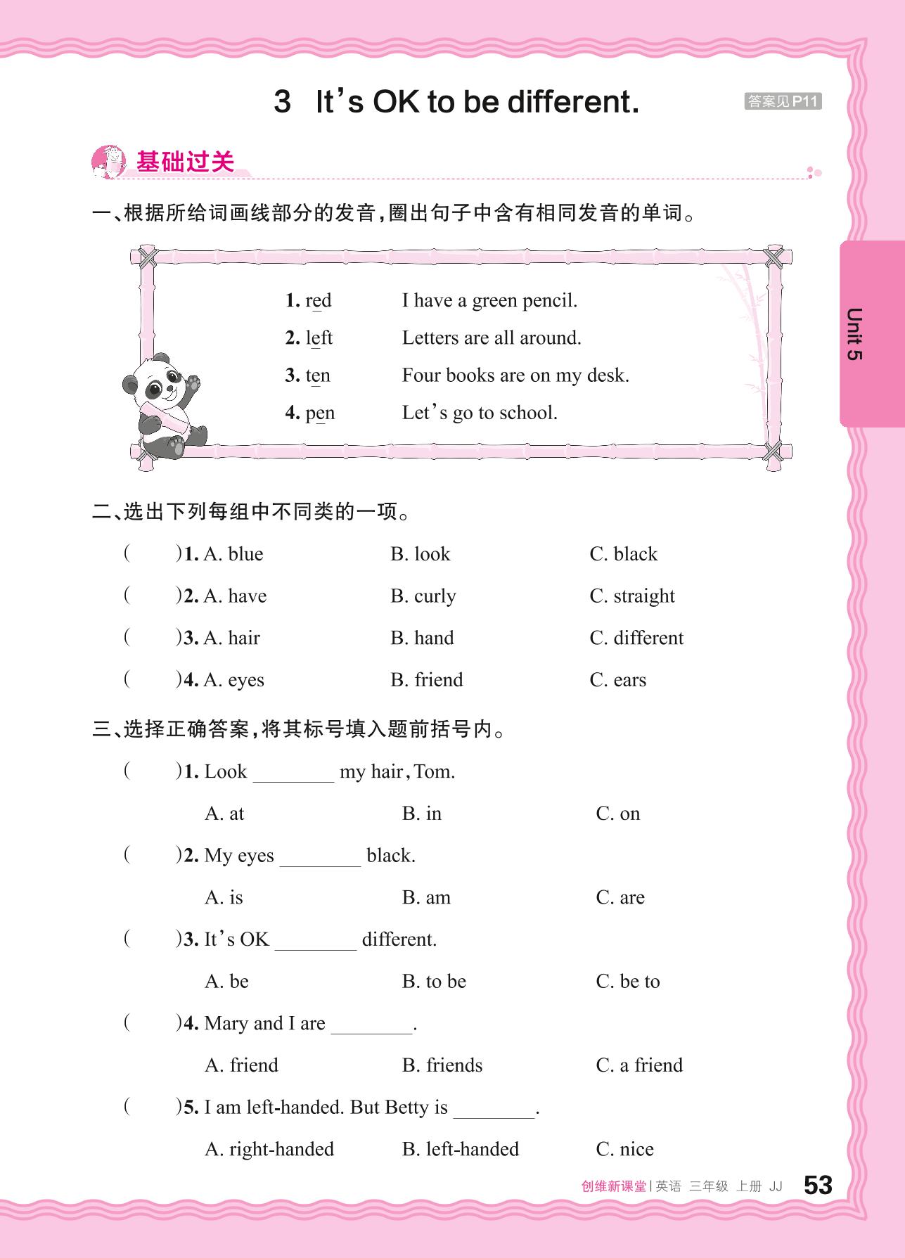2024秋上册三年级英语冀教版 Unit 5—3 It's OK to be different.