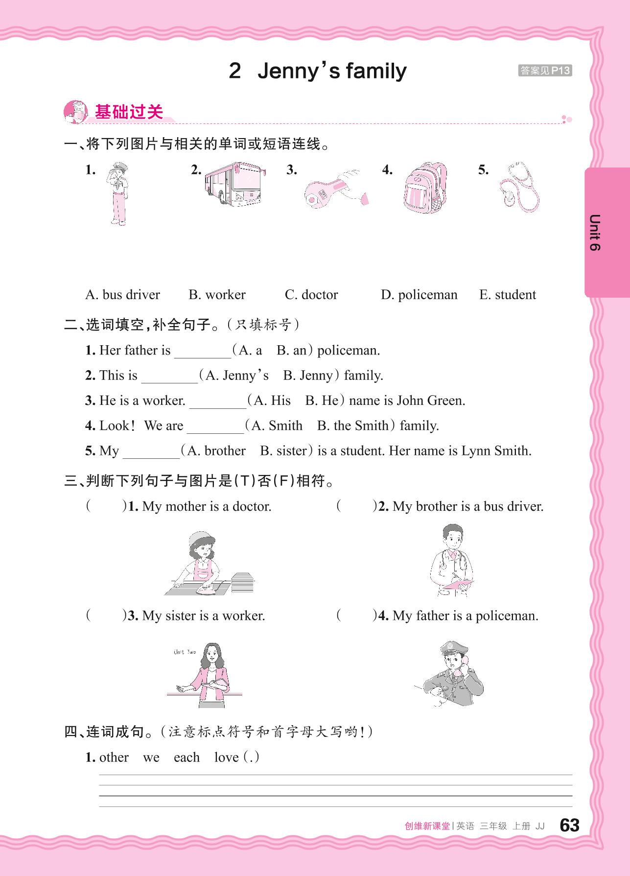 2024秋上册三年级英语冀教版 Unit 6—2 Jenny's family