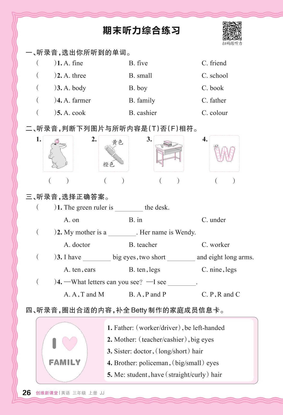 2024秋上册三年级英语冀教版 期末听力综合练习