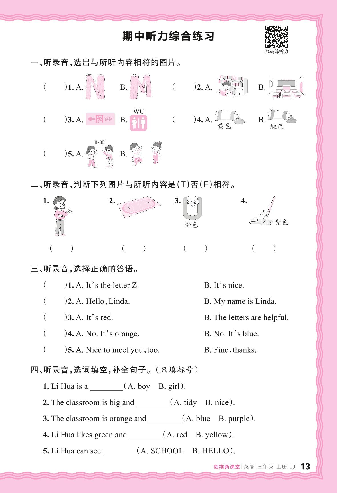 2024秋上册三年级英语冀教版 期中听力综合练习