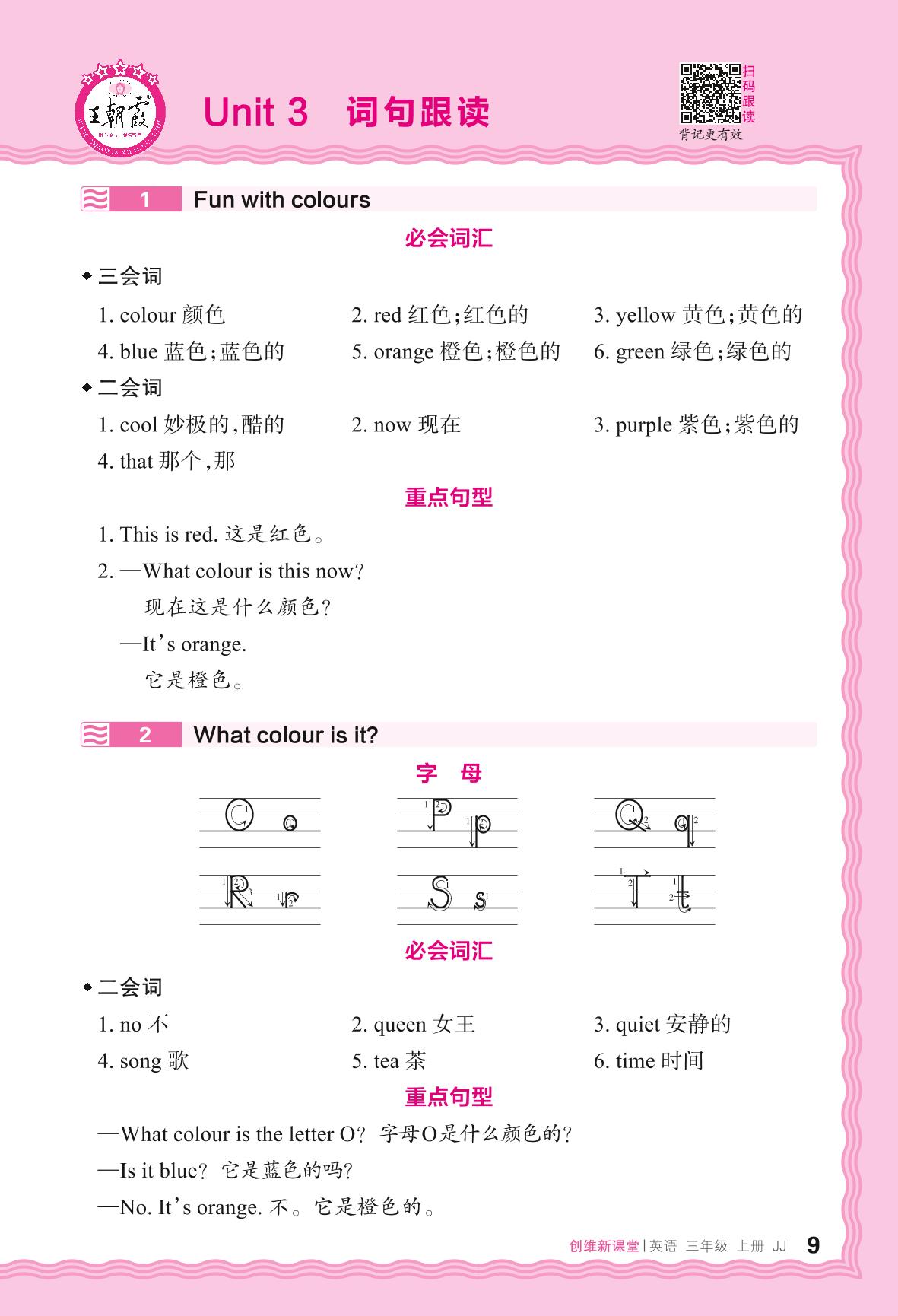 2024秋上册三年级英语冀教版 Unit 3 词句跟读
