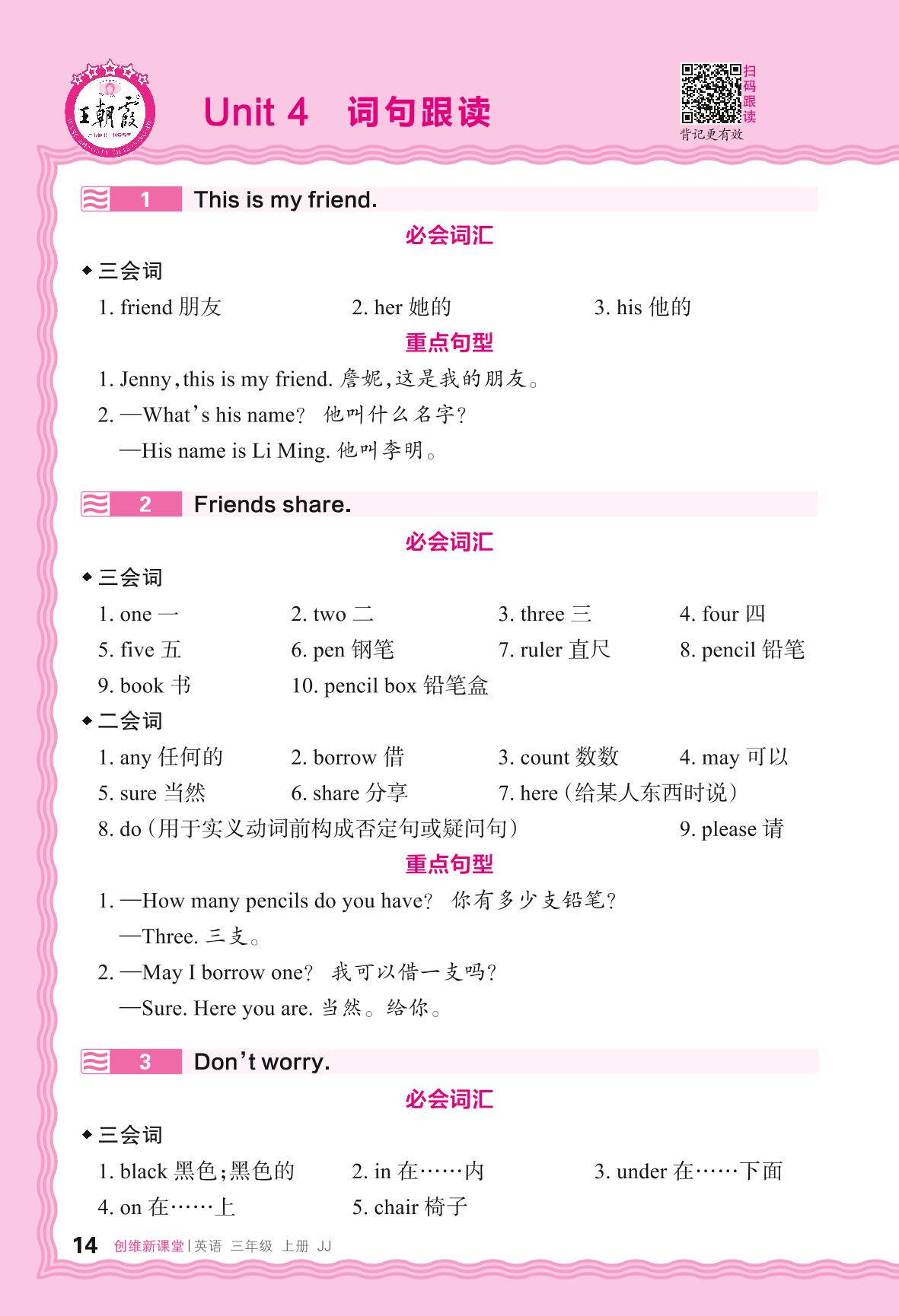 2024秋上册三年级英语冀教版 Unit 4 词句跟读