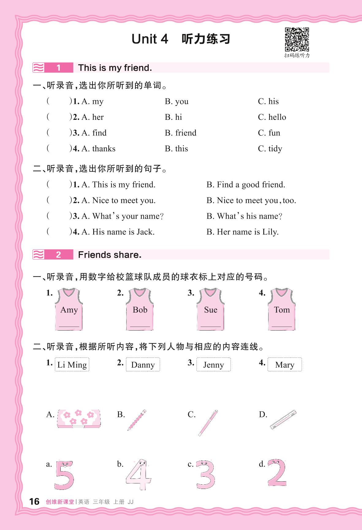 2024秋上册三年级英语冀教版 Unit 4 听力练习