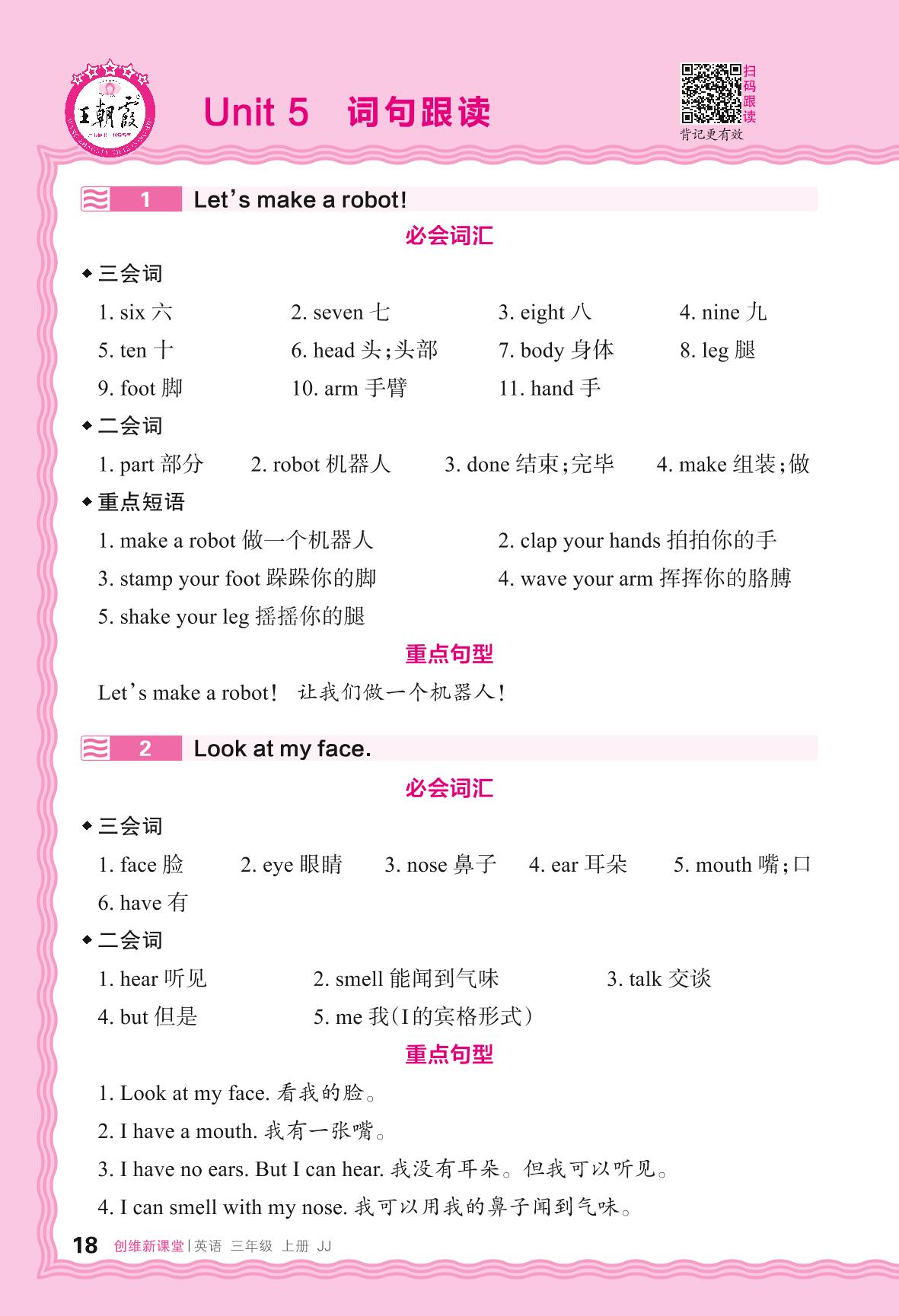 2024秋上册三年级英语冀教版 Unit 5 词句跟读