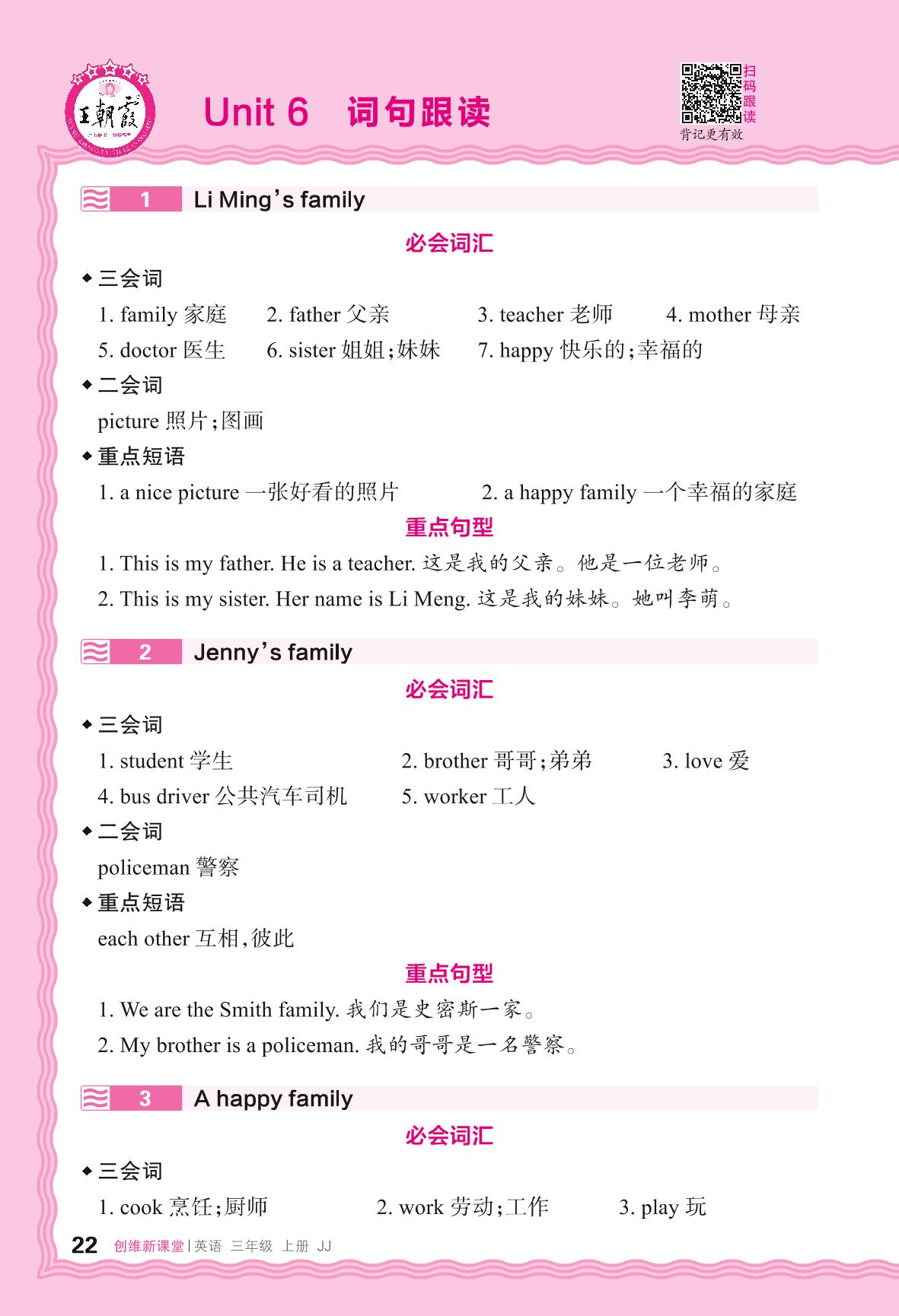 2024秋上册三年级英语冀教版 Unit 6 词句跟读