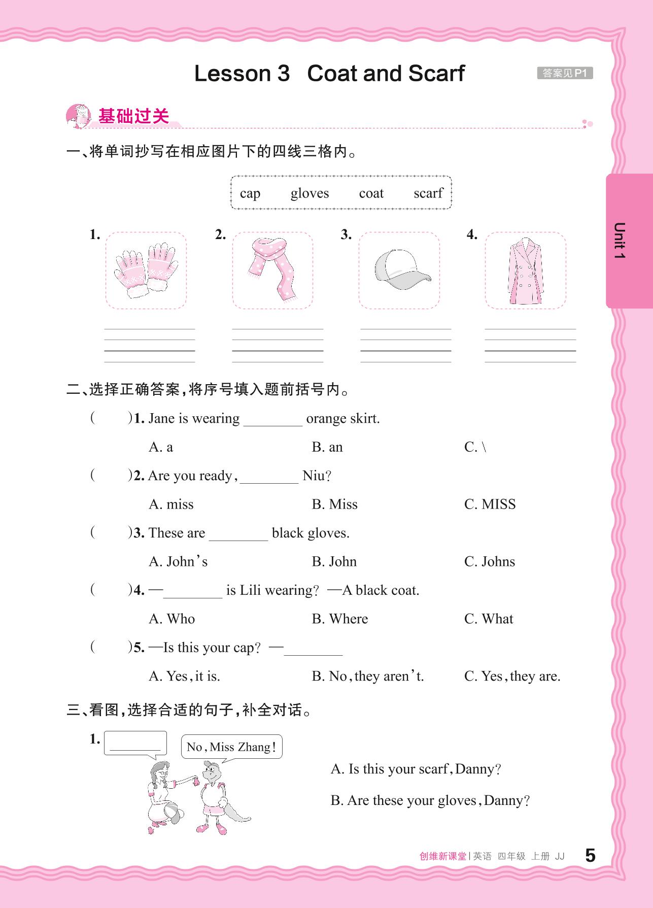 2024秋上册四年级英语冀教版 Unit 1—Lesson 3 Coat and Scarf