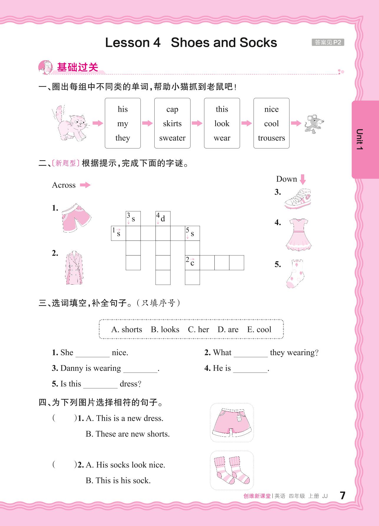 2024秋上册四年级英语冀教版 Unit 1—Lesson 4 Shoes and Socks