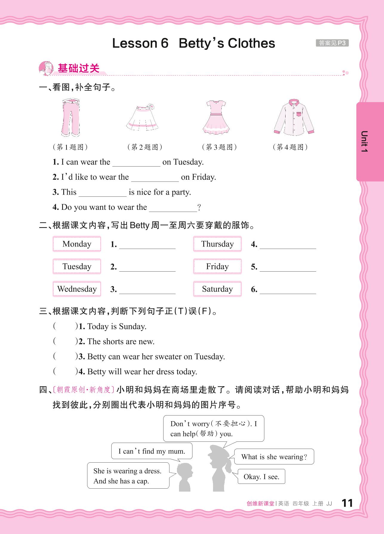 2024秋上册四年级英语冀教版 Unit 1—Lesson 6 Betty's Clothes