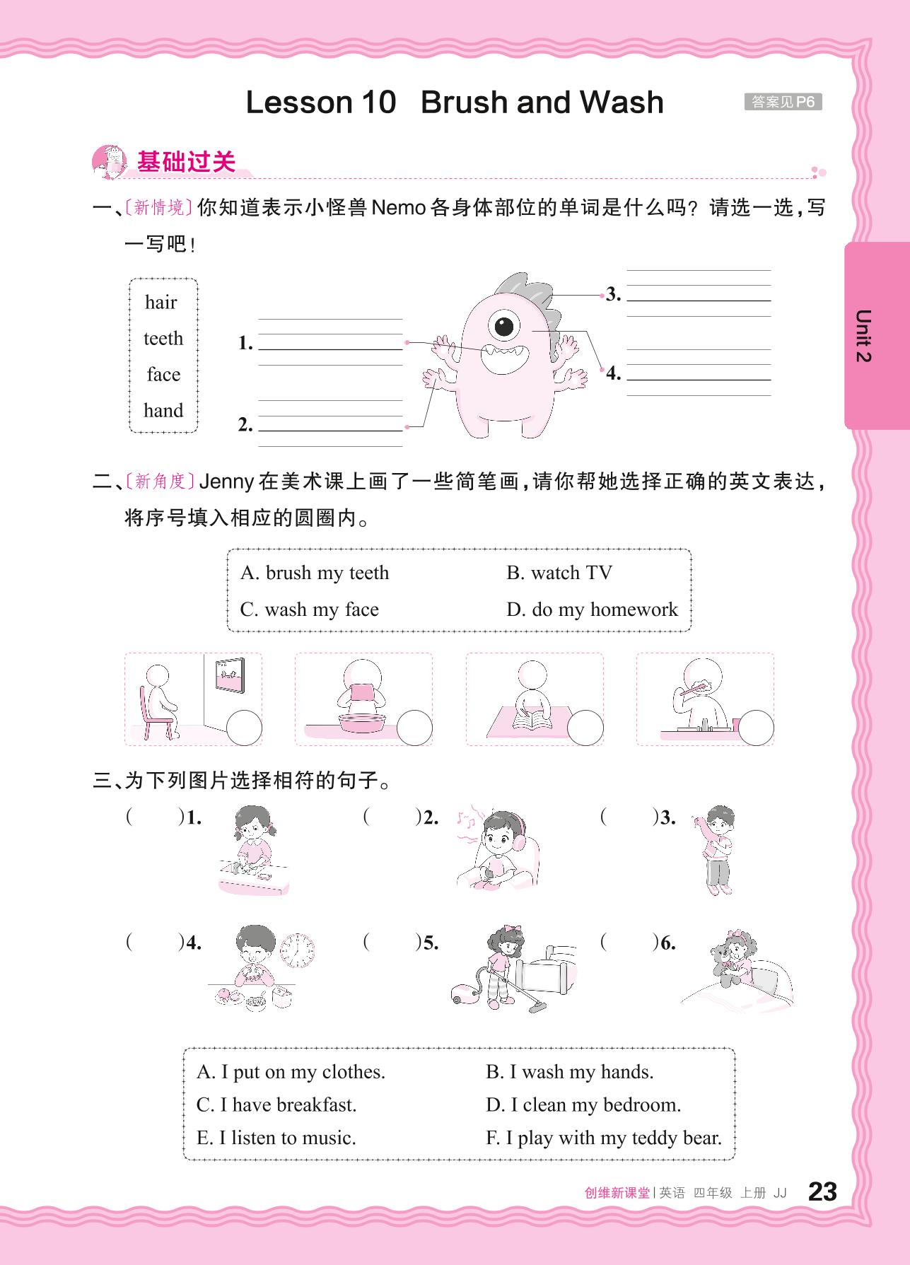 2024秋上册四年级英语冀教版 Unit 2—Lesson 10 Brush and Wash