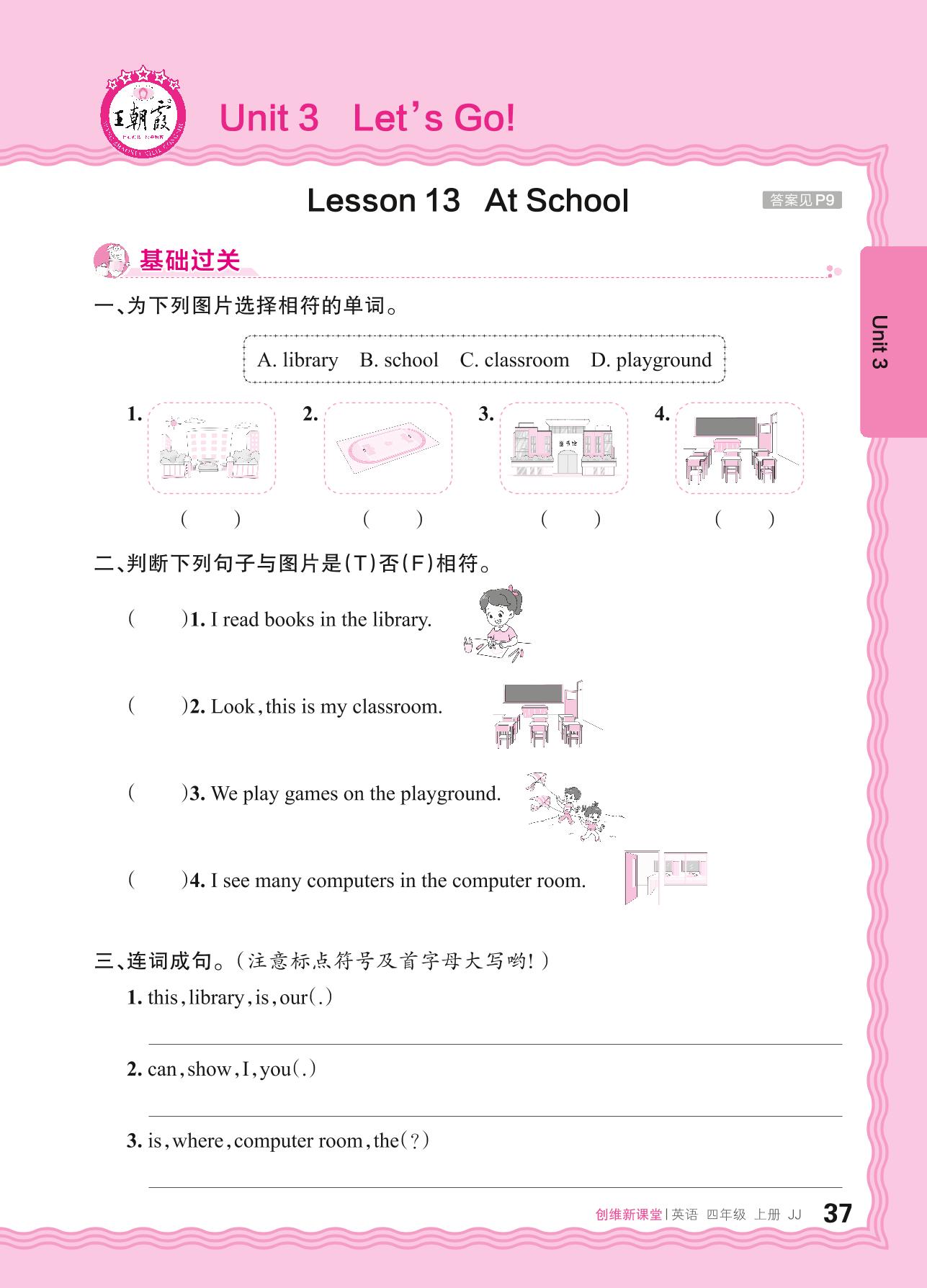 2024秋上册四年级英语冀教版 Unit 3—Lesson 13 At School
