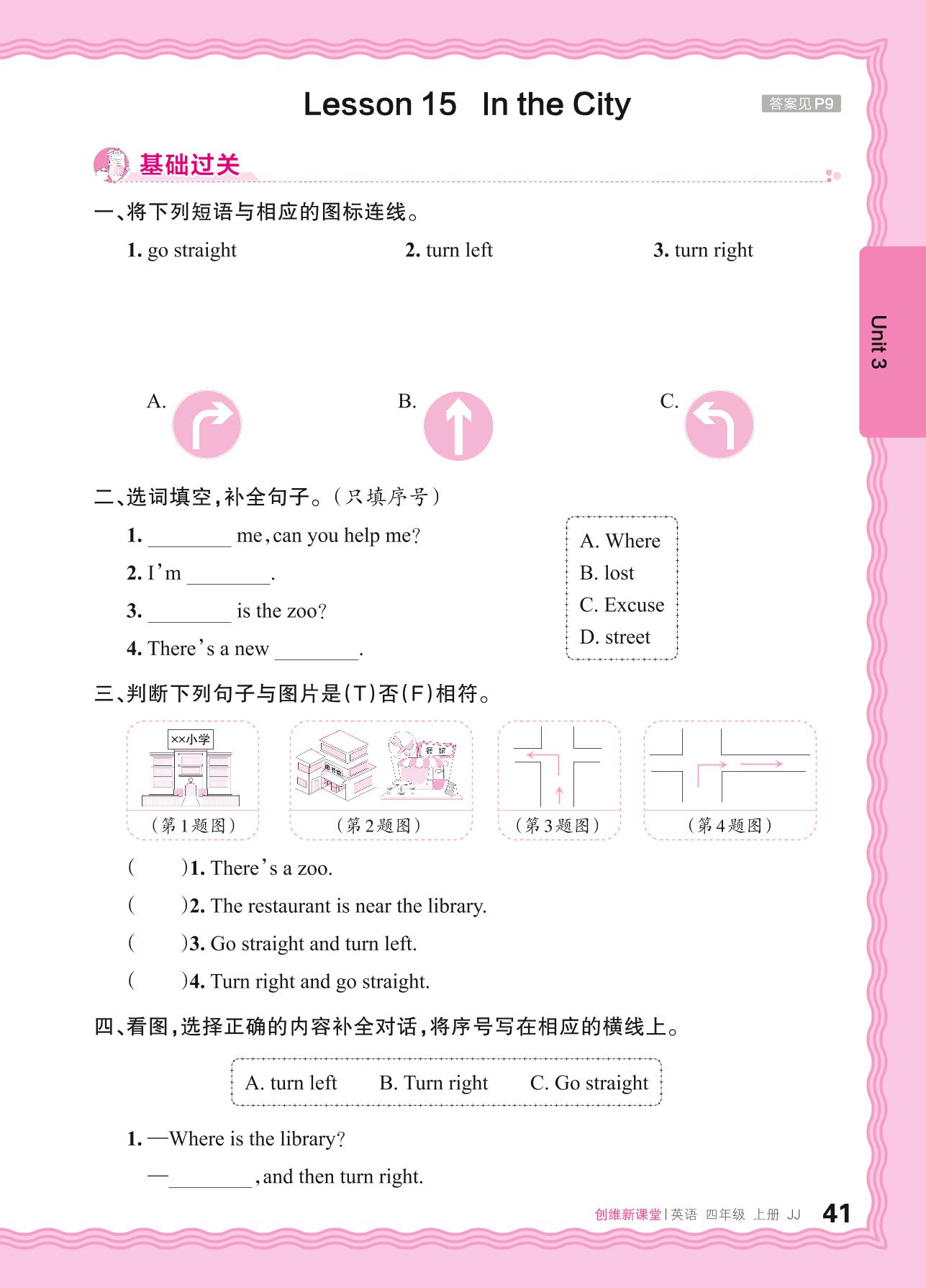 2024秋上册四年级英语冀教版 Unit 3—Lesson 15 In the City