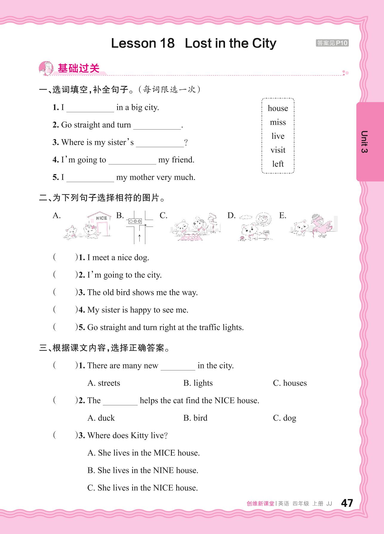 2024秋上册四年级英语冀教版 Unit 3—Lesson 18 Lost in the City