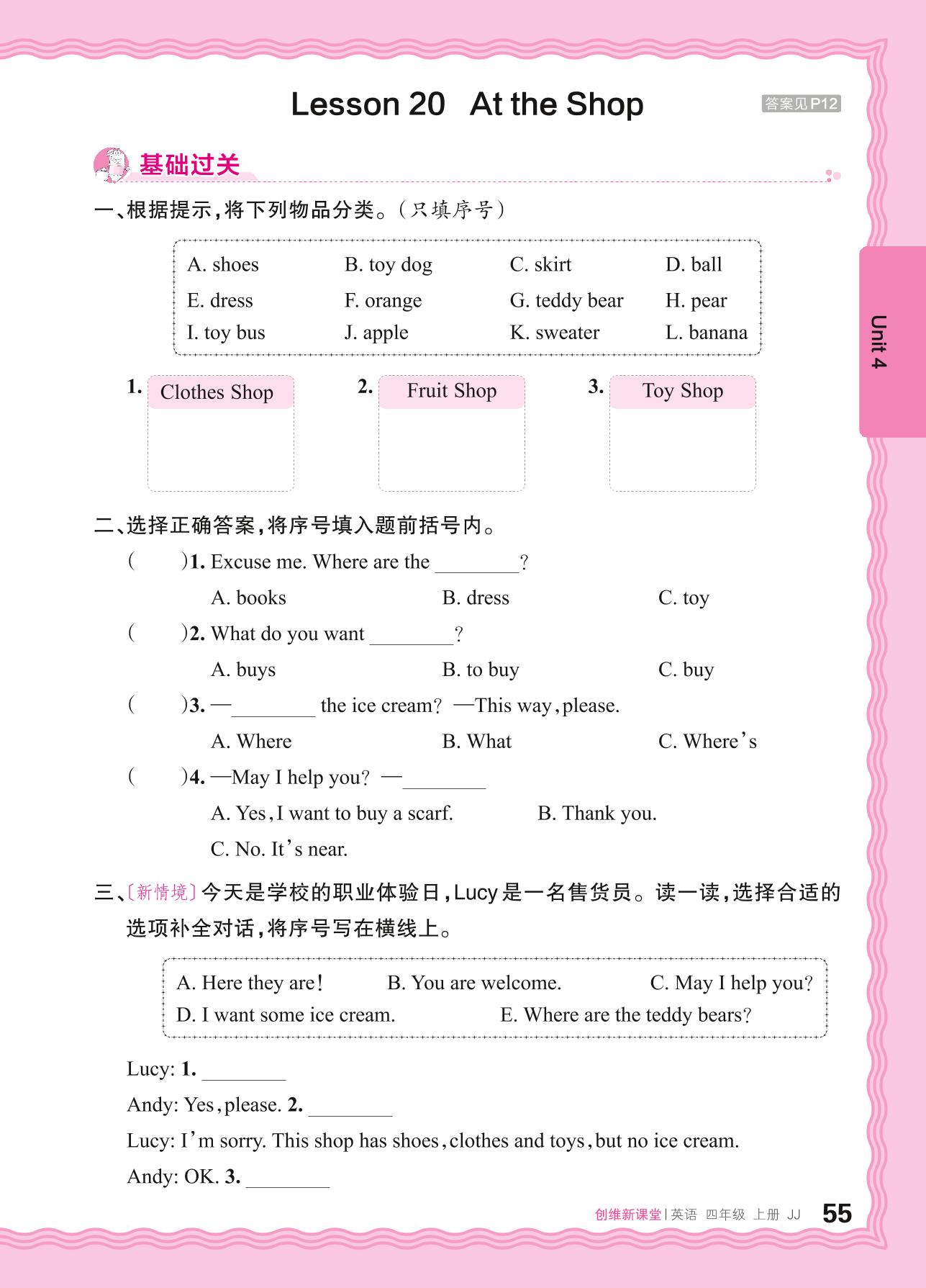 2024秋上册四年级英语冀教版 Unit 4—Lesson 20 At the Shop