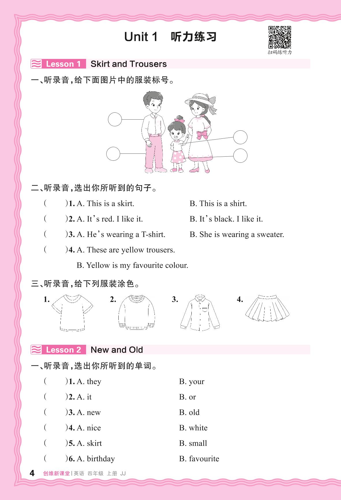 2024秋上册四年级英语冀教版 Unit 1 听力练习