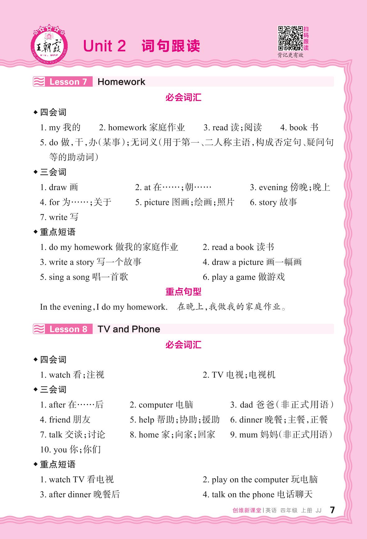 2024秋上册四年级英语冀教版 Unit 2 词句跟读
