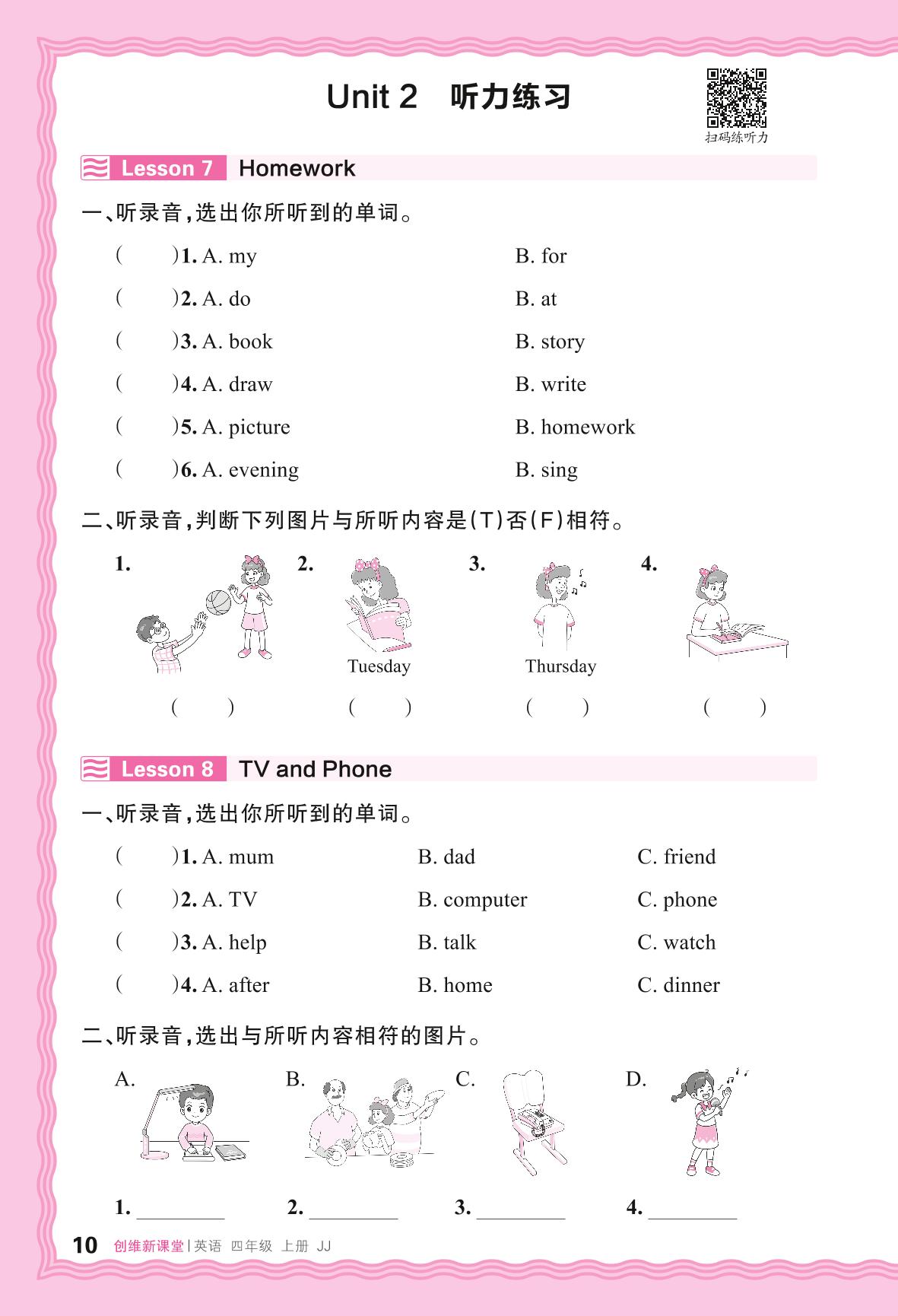 2024秋上册四年级英语冀教版 Unit 2 听力练习
