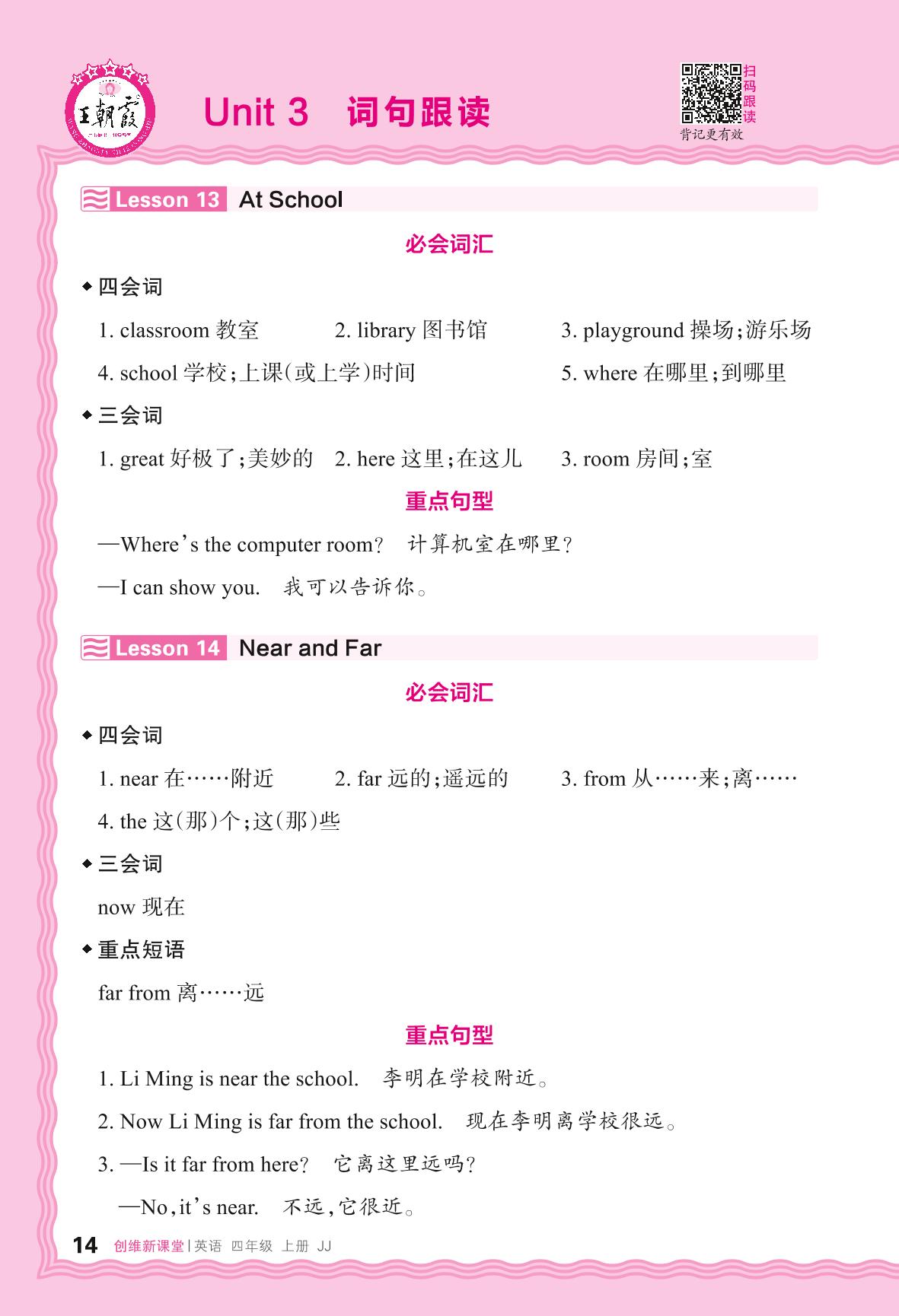 2024秋上册四年级英语冀教版 Unit 3 词句跟读