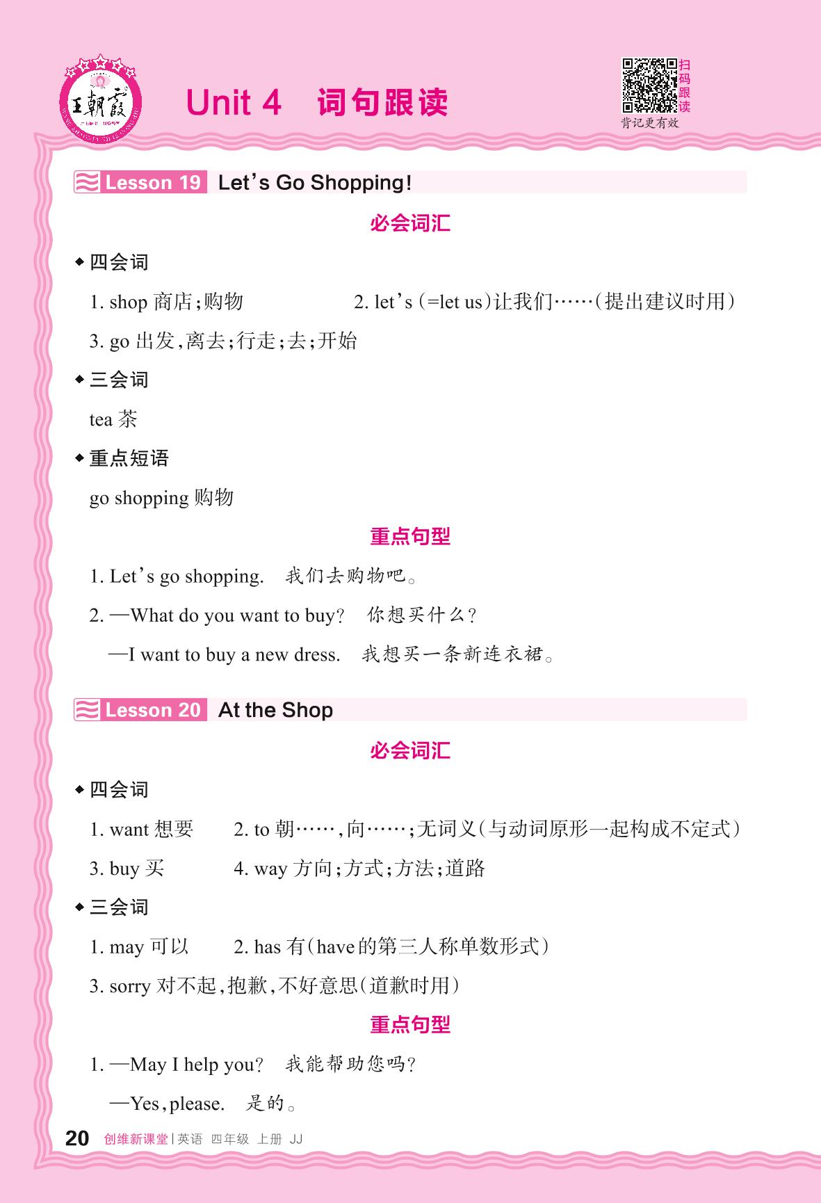 2024秋上册四年级英语冀教版 Unit 4 词句跟读