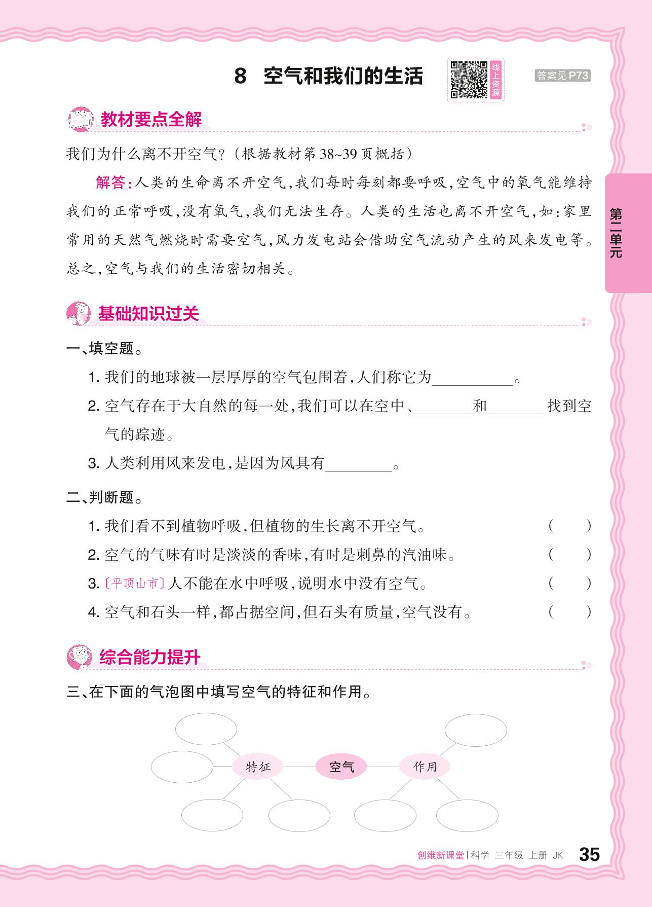 2024秋上册三年级科学教科版 第二单元 空气——8. 空气和我们的生活