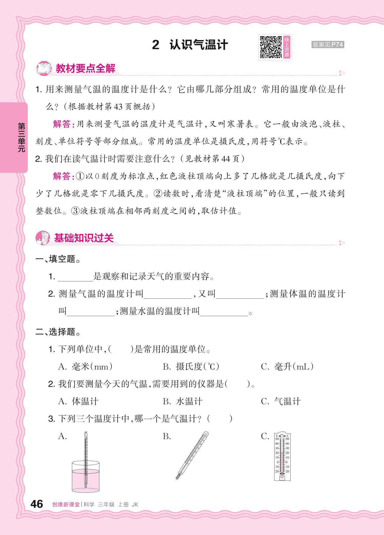 2024秋上册三年级科学教科版 第三单元 天气——2. 认识气温计