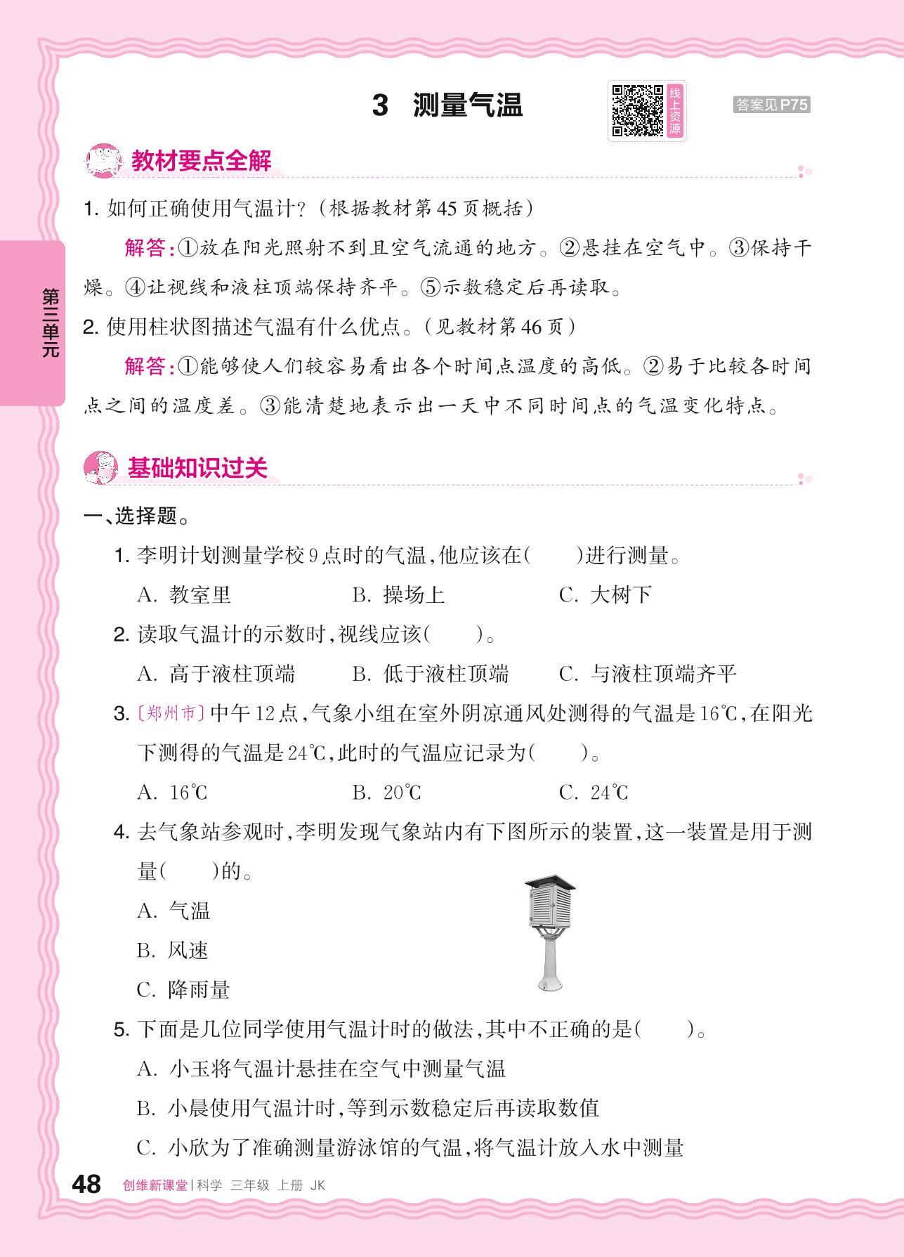 2024秋上册三年级科学教科版 第三单元 天气——3. 测量气温