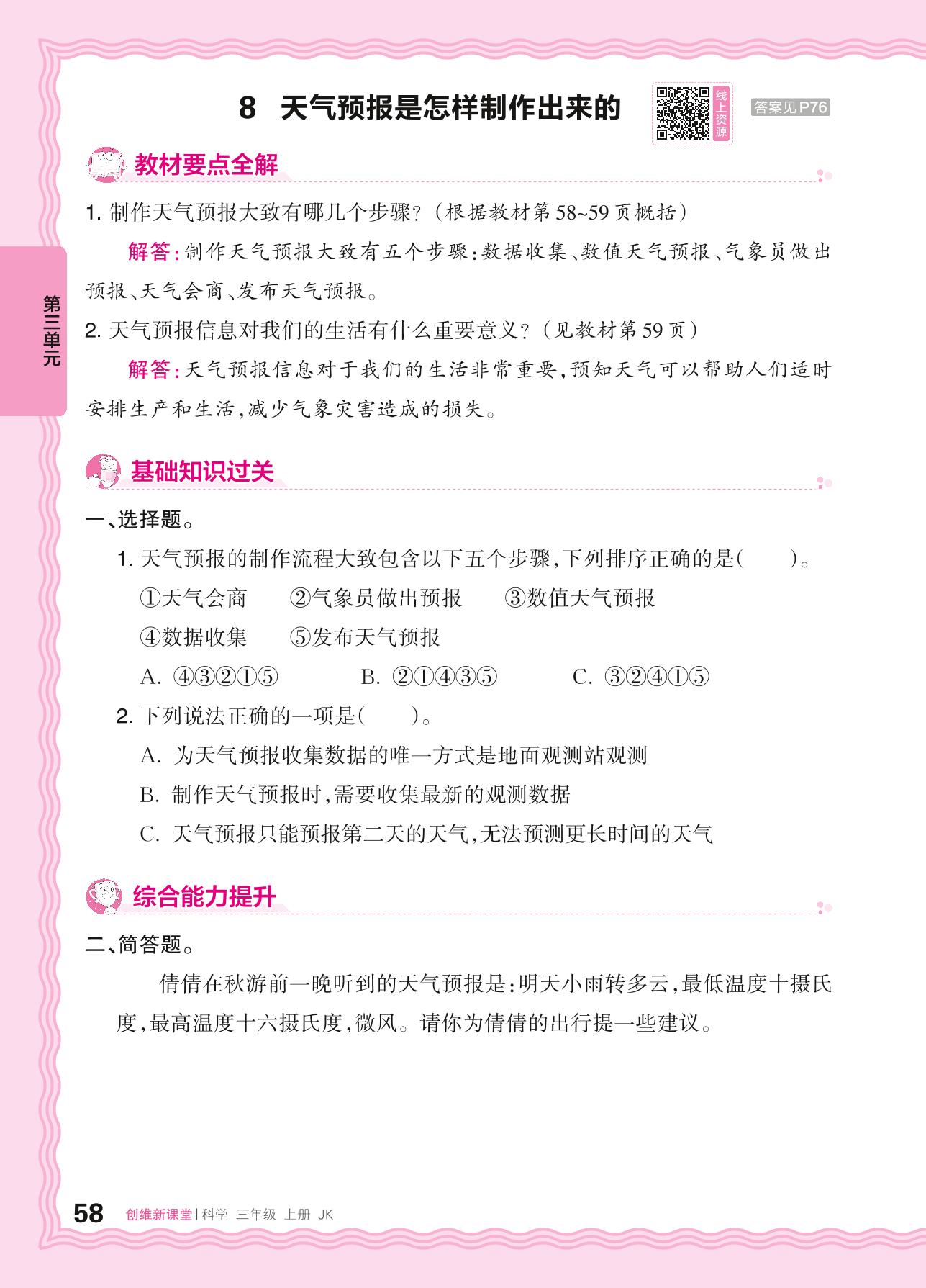 2024秋上册三年级科学教科版 第三单元 天气——8. 天气预报是怎样制作出来的