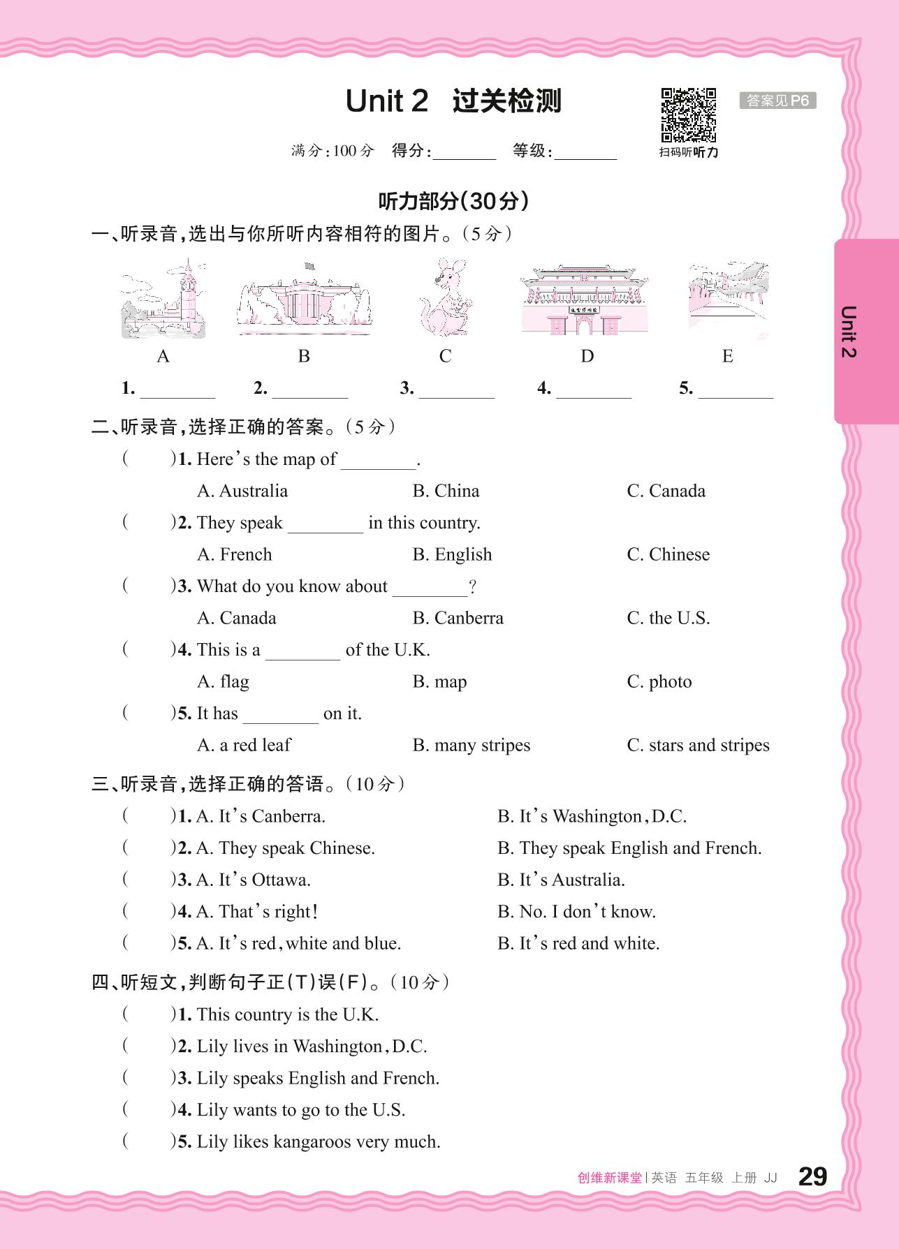 2024秋上册五年级英语冀教版 Unit 2 过关检测
