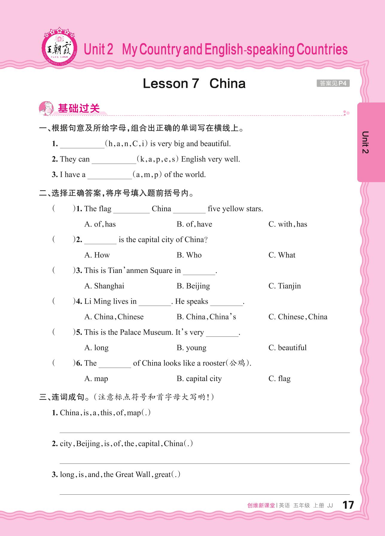2024秋上册五年级英语冀教版 Unit 2—Lesson 7 China