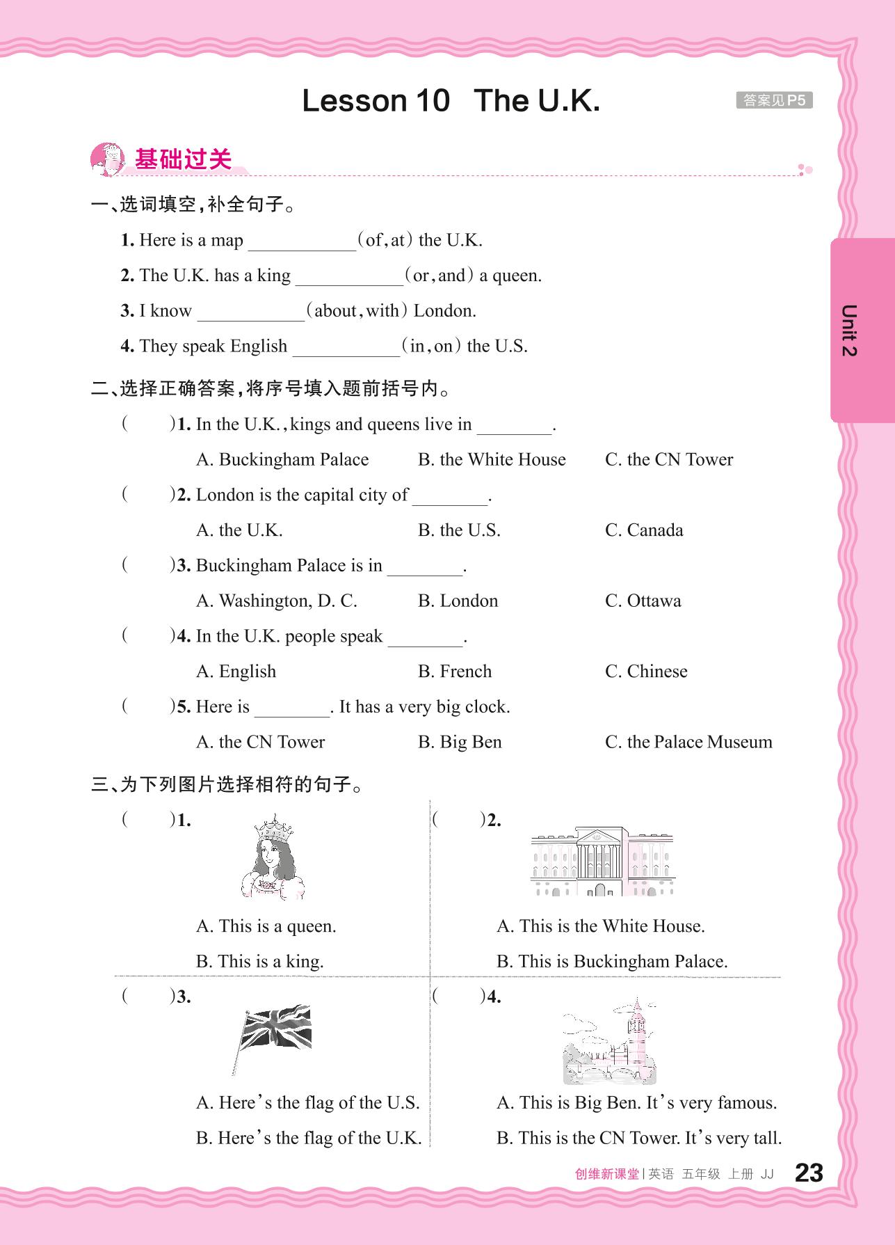 2024秋上册五年级英语冀教版 Unit 2—Lesson 10 The U.K.