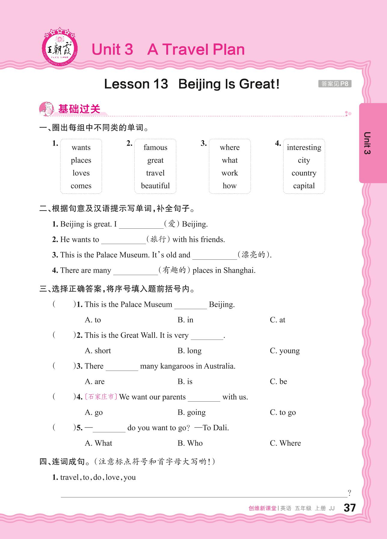 2024秋上册五年级英语冀教版 Unit 3—Lesson 13 Beijing Is Great!