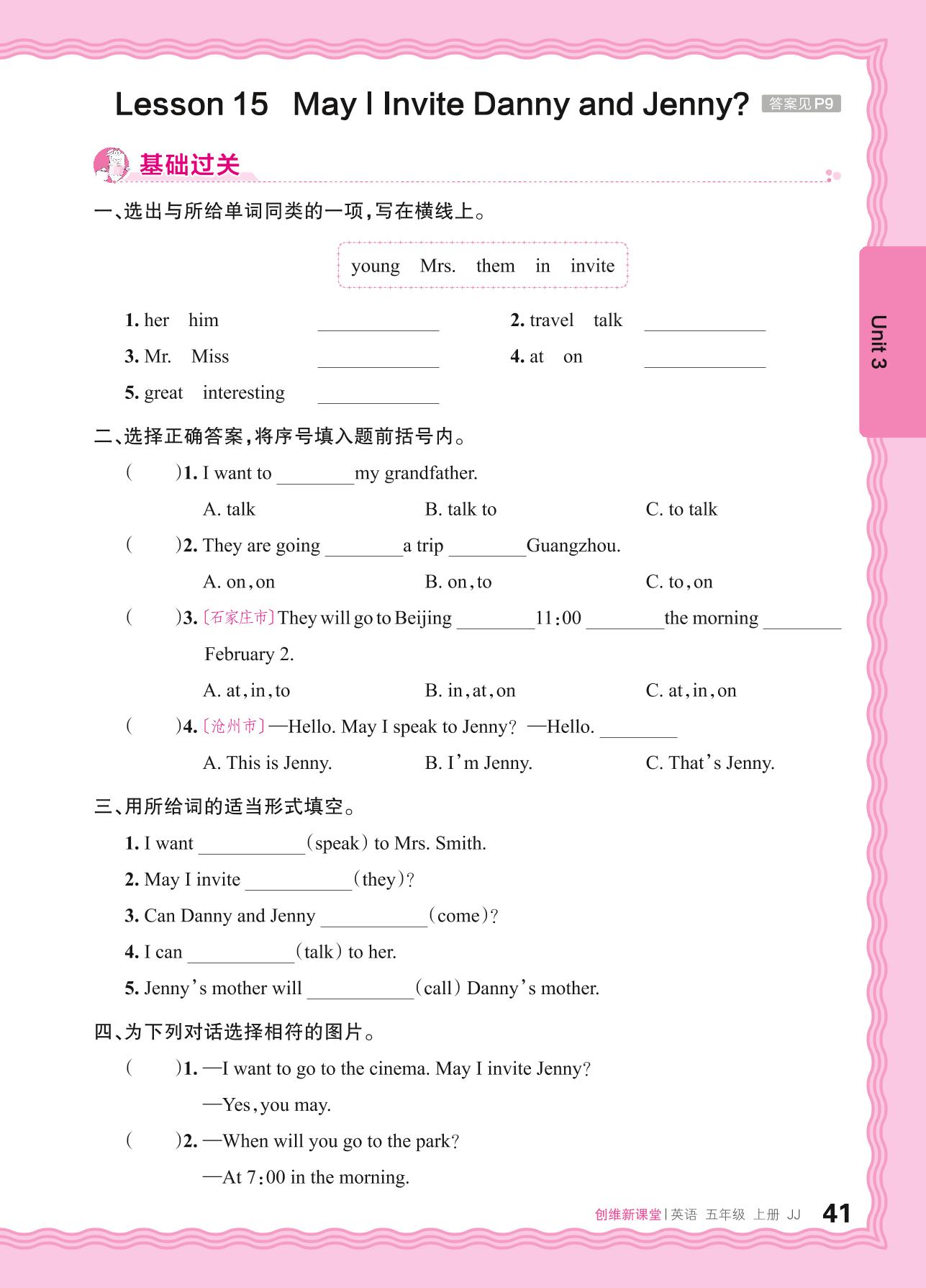 2024秋上册五年级英语冀教版 Unit 3—Lesson 15 May I Invite Danny and Jenny?